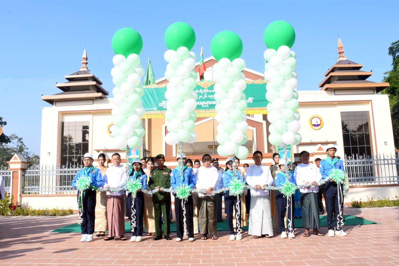 ဦးစွာ တိုင်းဒေသကြီးဝန်ကြီးချုပ်ဦးမြတ်ကို၊ တိုင်းဒေသကြီးလုံခြုံရေးနှင့်နယ်စပ်ရေးရာဝန်ကြီး ဗိုလ်မှူးကြီးသိန်းဇော်မြင့်၊ တိုင်းဒေသကြီးစီးပွားရေးရာဝန်ကြီးဦးမောင်ကြီး၊ တိုင်းဒေသကြီး လူမှုရေးရာဝန်ကြီး ဦးသက်နိုင်၊ တိုင်းဒေသကြီးပညာရေး ညွှန်ကြားရေးမှူးဦးဝင်းနောင်တို့က ပညာရေးစုံညီပွဲ တော်အား ဖဲကြိုးဖြတ်ဖွင့်လှစ်ပေးသည်။