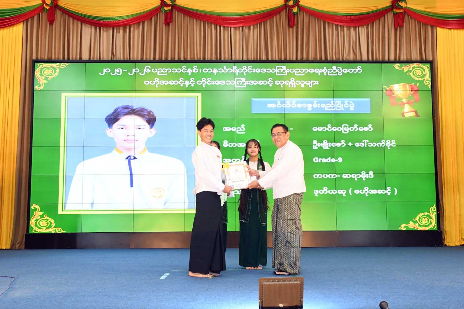 ထို့နောက်တိုင်းဒေသကြီးဝန်ကြီးချုပ်က နိုင်ငံတော်အနေဖြင့်ကျောင်းသား/ကျောင်းသူများ၏ စွမ်းဆောင်မှုများကို ထုတ်ဖော်ဂုဏ်ပြုနိုင်ရန် ၁၉၉၈-၁၉၉၉ ပညာသင်နှစ်မှစ၍ “ပညာရေးစုံညီပွဲတော်” ကို နှစ်စဉ်ကျင်းပလျက်ရှိကြောင်း၊ ပညာရေးတိုးတက်မြင့်မားရေးအတွက် ဖြည့်ဆည်းပေးရန် လိုအပ်ချက်များကို မိဘပြည်သူများ၊ ကျောင်းအကျိုးတော်ဆောင်အဖွဲ့များနှင့် တွေ့ဆုံဆွေးနွေးပြီး “မိဘဆရာပူးပေါင်းကလေးပညာကောင်း” ဆိုသကဲ့သို့ ကလေးများ၏ ဗလငါးတန်ကို ဖော်ထုတ်ပြသခွင့်ရအောင်ဖန်တီးပေးသည့်ပွဲတော်ဖြစ်ကြောင်း၊ နိုင်ငံတစ်နိုင်ငံ စဉ်ဆက်မပြတ် ဖွံ့ဖြိုးတိုးတက်စေရန် လူ့စွမ်းအားအရင်းအမြစ်ဖြင့်သာ အဓိကတည်ဆောက်ရခြင်းဖြစ်သည့်အတွက် အသိပညာ၊ အတတ်ပညာပြည့်စုံသော ပညာတတ်များ ပေါ်ထွက်လာစေရန်နှင့် ထူးချွန်ထက်မြက်ပြီး အကျင့်စာရိတ္တကောင်းမွန်၍ ကျန်းမာသန်စွမ်းသည့်ကျောင်းသား/ကျောင်းသူများဖြစ်ပေါ်လာစေရန်၊ ပညာရေးဌာနမှတာဝန်ရှိသူများ၊ ဆရာဆရာမများ၊ မိဘပြည်သူများစုံစုံညီညီ ပျော်ပျော်ရွှင်ရွှင် တက်တက်ကြွကြွ ပူးပေါင်းပါဝင်နိုင်ရန် ဝိုင်းဝန်းဆောင်ရွက်ကြစေလိုကြောင်း၊ တနင်္သာရီတိုင်းဒေသကြီးအနေဖြင့်ဗဟိုအဆင့်အင်္ဂလိပ်စာနှင့် သင်္ချာစွမ်းရည်ပြိုင်ပွဲတွင် (၄)နှစ်ဆက်တိုက် ဆုများရရှိခဲ့ပြီး National ICT Awards ပြိုင်ပွဲတွင်လည်း (၃)နှစ်ဆက်တိုက် ဆုများရရှိခဲ့သောကြောင့် များစွာဂုဏ်ယူပါကြောင်း၊ ယခု ၂၀၂၅-၂၀၂၆ ပညာသင်နှစ်တွင် ကျောင်းပြင်ပမူလတန်းနှင့် အလယ်တန်းပညာရေးအစီအစဉ်ကို စီစဉ်ဆောင်ရွက်ပေးလျက်ရှိကြောင်း၊ ကျောင်းသားကျောင်းသူများအနေဖြင့် မိဘ၊ ဆရာများကအားကိုးရပြီး နိုင်ငံတော်က အားထားရသည့် သားကောင်း သမီးမွန်များဖြစ်အောင် ဆက်လက်ကြိုးစားကြရန် လိုအပ်ကြောင်းပြောကြားသည်။