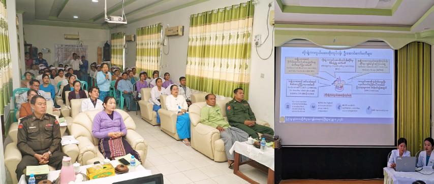 ဆက်လက်၍ မြို့နယ်ပြည်သူ့ကျန်းမာရေးဦးစီးဌာနမှ ဦးစီးအရာရှိ ဒေါ်တင်တင်ခိုင်က မြို့နယ်အဆင့် ပုံမှန်ကာကွယ် ဆေးထိုးနှံတိုက်ကျွေးခြင်းလုပ်ငန်းဆောင်ရွက်နေမှုများ၊ ဆက်လက်ဆောင်ရွက်မည့်လုပ်ငန်းစဉ်များနှင့် စပ်လျဉ်း၍ ရှင်းလင်းဆွေးနွေးရာ တက်ရောက်လာသည့် မြို့နယ်စီမံခန့်ခွဲရေးနှင့်အုပ်ချုပ်ရေးကော်မတီဥက္ကဋ္ဌနှင့် အဖွဲ့ဝင်များ၊ ဌာနဆိုင်ရာများ၊ ခရိုင်/မြို့နယ် ပြည်သူ့ကျန်းမာရေးဦးစီးဌာနမှ ဝန်ထမ်းများက ပြန်လည်ဆွေးနွေးခဲ့ကြကြောင်း သိရသည်။