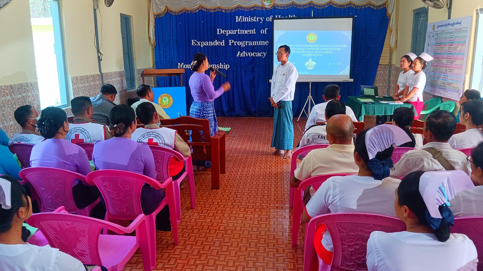 ပဲခူးတိုင်းဒေသကြီး၊ သာယာဝတီခရိုင်၊ မိုးညိုမြို့နယ်ကျန်းမာရေးဦးစီးဌာန အစည်းအဝေးခန်းမ၌ မြို့နယ်အတွင်း ကာကွယ်ဆေးထိုးလွှမ်းခြုံမှုပိုမိုမြင့်မားစေရေးနှင့် ကာကွယ်ဆေးလွှမ်းခြုံမှုအားနည်းသည့်ဒေသများတွင် ကာကွယ်ဆေးထိုးနှံတိုက်ကျွေးသည့်လုပ်ငန်းများ ပိုမိုဆောင်ရွက်နိုင်ရေးအတွက် အသိပေးဆွေးနွေးခြင်းနှင့် လုပ်ငန်းညှိ့နိူင်းအစည်းအဝေးကို ဇန်နဝါရီ ၂၉ ရက်၊ နံနက် ၁၀ နာရီက ပြုလုပ်ခဲ့သည်။