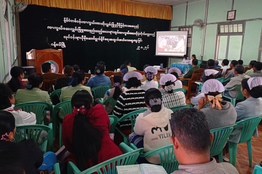ဆက်လက်၍ နိုင်ငံတစ်ဝန်း ကာကွယ်ဆေးထိုးလုပ်ငန်းလွှမ်းခြုံမှု ပိုမိုမြင့်မားစေရေးနှင့် ကာကွယ်ဆေးထိုးလုပ်ငန်းလွှမ်းခြုံမှုအားနည်းသည့် ဒေသများတွင် ကာကွယ်ဆေးထိုးနှံတိုက်ကျွေးသည့်လုပ်ငန်းများ ပိုမိုဆောင်ရွက်နိုင်ရေး မှတ်တမ်းဗွီဒီယိုကိုပြသပြီး ခေတ္တခရိုင် ပြည်သူ့ကျန်းမာရေးဦးစီးဌာနမှူး ဒေါက်တာဝင်းထိုက်မှ တိုးချဲ့ကာကွယ်ဆေးထိုးနှံတိုက်ကျွေးခြင်းလုပ်ငန်းများ ဆောင်ရွက်မှုနှင့် ဆက်လက်ဆောင်ရွက်မည့် လုပ်ငန်းများအား Power Point ဖြင့် ရှင်းလင်းဆွေးနွေးခဲ့ကာ မြို့နယ်စီမံခန့်ခွဲရေးနှင့်အုပ်ချုပ်ရေးကော်မတီဥက္ကဋ္ဌ ဦးစိုးဝင်းနှင့် တက်ရောက်လာကြသူများက စုပေါင်းမှတ်တမ်းတင်ဓာတ်ပုံရိုက်ခဲ့ကြသည်။