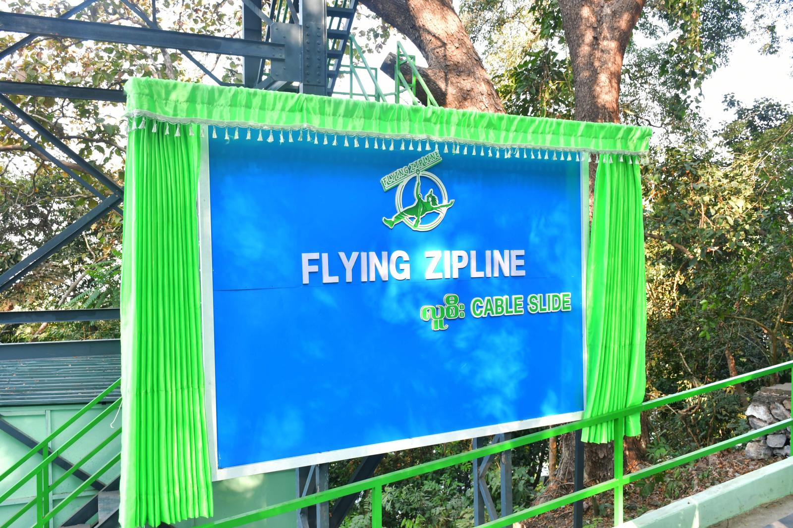 ထို့နောက် ပြည်နယ်ဝန်ကြီးချုပ်က လူစီး Cable Slide ဆိုင်းဘုတ်နှင့် ကမ္ပည်းမော်ကွန်းတို့အား စက်ခလုပ်နှိပ်ဖွင့် လှစ်ပေးပြီး တက်ရောက်လာသူများနှင့်အတူ အမွှေးနံ့သာရည်များ ပက်ဖြန်းပေးကြပြီး ဝန်ထမ်းများက Cable Slide စီးနင်းပြသခြင်းနှင့် ကယ်ဆယ်ရေးစနစ်များ သရုပ်ပြခြင်းကို ကြည့်ရှုအားပေးကာ မိသားစုအလိုက်ကလေးငယ်များမှခြေနင်း အပျော်စီးရထားကို ပျော်ရွင်စွာစီးနင်း ကစားနေမှုအား လှည့်လည်ကြည့်ရှုအားပေး၍ ကလေးများကို အရုပ်နှင့်မုန့်များ ဝေငှပေးခဲ့ကြသည်။