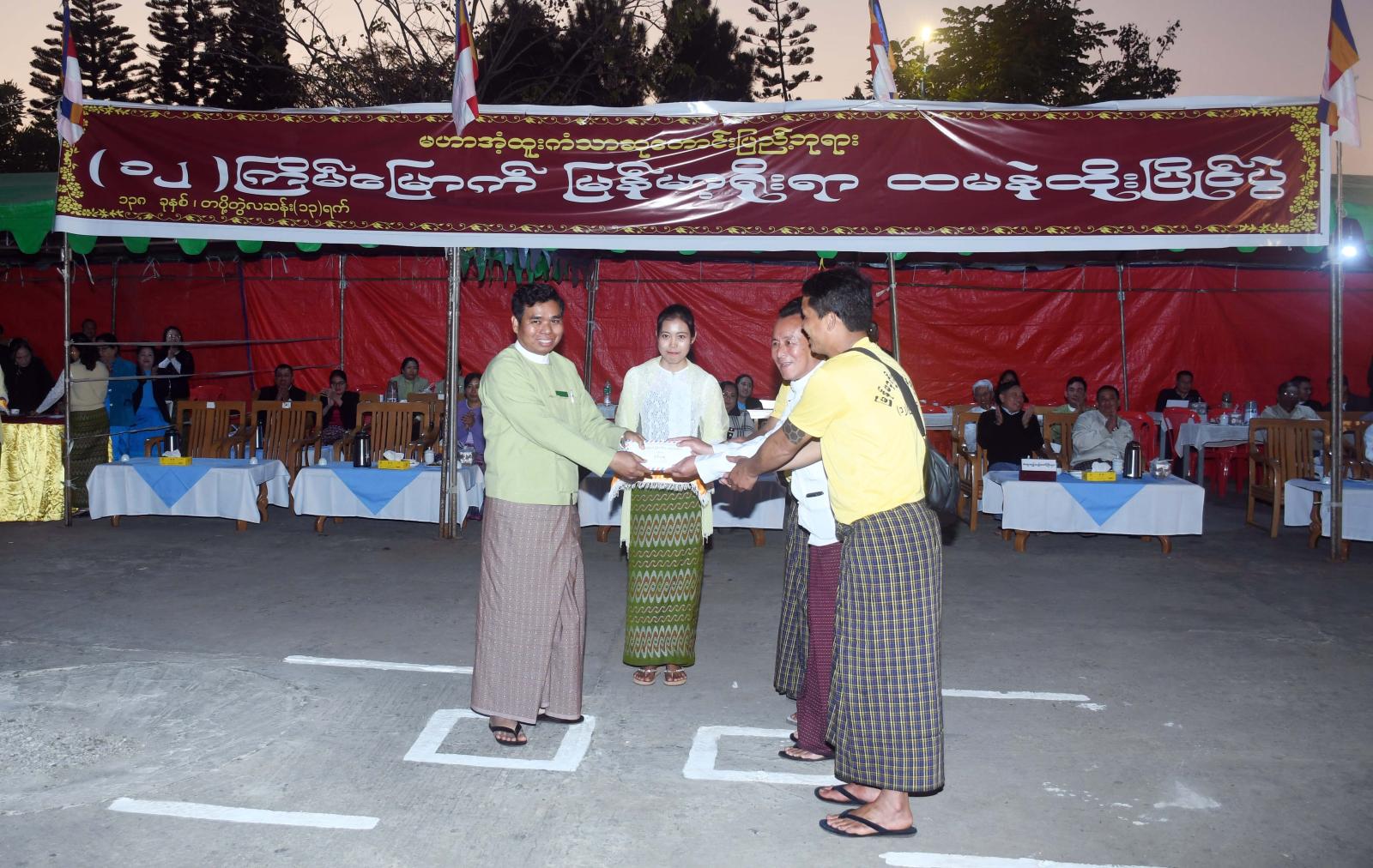 ဆက်လက်ပြီး ပြိုင်ပွဲတွင် ဆုရရှိသောအသင်းအဖွဲ့များကို အလှူရှင်များမှ ဆုများထိုက်တန်စွာချီးမြှင့်ကြပြီး တက်ရောက်လာသော ပြည်သူအပေါင်းတို့အား ထမနဲဖြင့်တည်ခင်းဧည့်ခံခဲ့ကြောင်း သိရသည်။