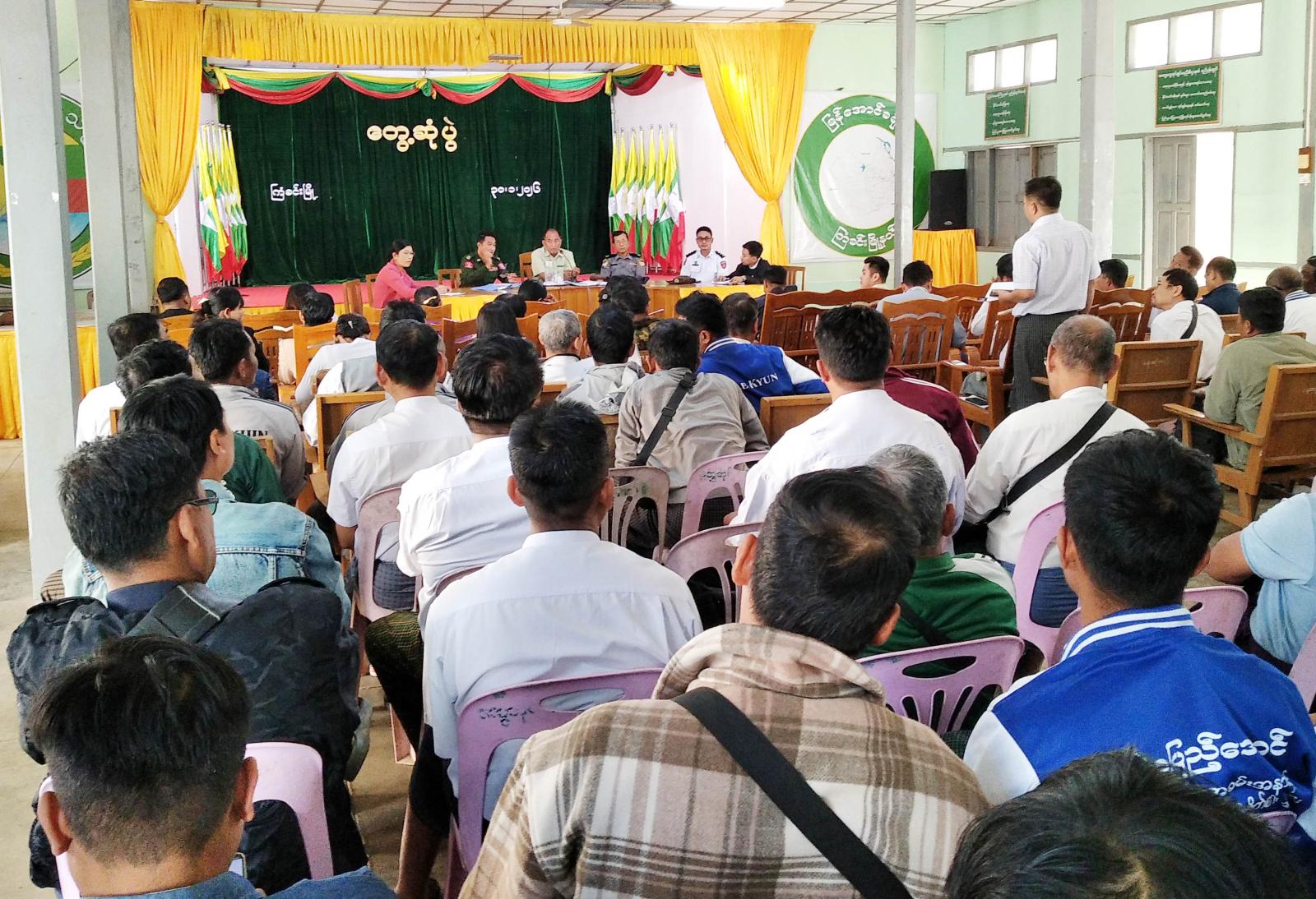 ဆက်လက်၍ အဖွဲ့ဝင် ဗိုလ်မှူးသောင်းထွဋ်လွင်က ပါတီစုံရွေးကောက်ပွဲတွင် ကျရာတာဝန်များကို ပူးပေါင်းဆောင်ရွက်ပေးကြသော ဌာနဆိုင်ရာများနှင့် ရပ်ကွက်/ကျေးရွာအုပ်ချုပ်ရေးမှူးများအား အထူး ကျေးဇူးတင်ရှိပါကြောင်း၊ ပွင့်လင်းရာသီ ရောက်ရှိလာပြီဖြစ်တဲ့အတွက် မီးဘေးအန္တရာယ်သတိရှိရန် လိုအပ်ပါကြောင်း၊ မြို့အင်္ဂါရပ်နှင့်အညီ သန့်ရှင်းသာယာလှပစေရေးအတွက် ဌာနဆိုင်ရာများ၊ ရပ်ကွက်/ကျေးရွာ အုပ်ချုပ်ရေးမှူးများနှင့် ဒေသခံပြည်သူများ ဝိုင်းဝန်းပူးပေါင်းဆောင်ရွက်ကြရန် ပြောကြားပြီး၊ အခမ်းအနား တက်ရောက်လာကြသော ဌာနဆိုင်ရာအကြီးအကဲများနှင့် အုပ်ချုပ်ရေးမှူးများက ဒေသဖွံ့ဖြိုးရေးလုပ်ငန်းများ၊ ဌာနမှတာဝန်ယူဆောင်ရွက်သည့်လုပ်ငန်းများအား တင်ပြဆွေးနွေးကြခဲ့ကြရာ တင်ပြချက်များအပေါ် မြို့နယ်စီမံခန့်ခွဲရေးနှင့်အုပ်ချုပ်ရေးကော်မတီဥက္ကဋ္ဌ ပေါင်းစပ်ညှိနှိုင်းဆောင်ရွက်ပေးခဲ့ကြကြောင်း သိရသည်။