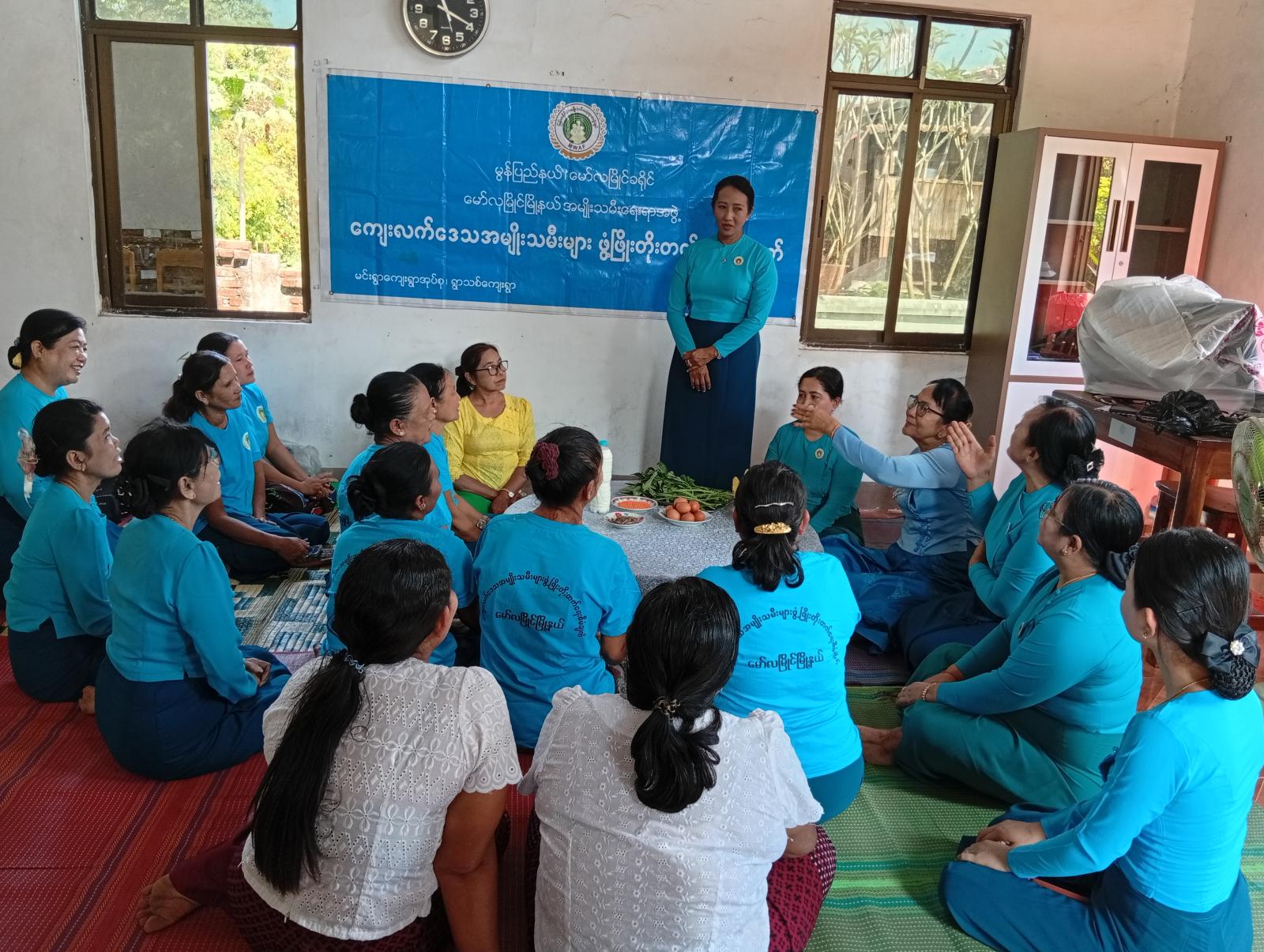 ထိုသို့ ဆောင်ရွက်ရာတွင် မော်လမြိုင်မြို့နယ် မင်းရွာကျေးရွာ မင်းရွာတိုက်ကျောင်း သက်ကြီးဓမ္မာရုံ၌ ကျေးလက်ဒေသအမျိုးသမီးများ ဖွံ့ဖြိုးတိုးတက်ရေး စီမံချက်ကျေးရွာဖြစ်သော မင်းရွာစံပြကျေးရွာရှိ အမျိုးသမီးရေးရာ ဆယ်အိမ်စုမှူးများနှင့် တွေ့ဆုံ၍ မွန်ပြည်နယ် အမျိုးသမီရေးရာအဖွဲ့ဥက္ကဋ္ဌ ဒေါ်အိနန္ဒာဝင်းက ကျေးလက်နေပြည်သူများ၏ ကျန်းမာရေး၊ ပညာရေးနှင့် လူမှုဘဝဖွံ့ဖြိုး တိုးတက်ရေး၊အမျိုးသမီးများ ဖွံ့ဖြိုးတိုးတက်ရေး လုပ်စဉ်အကြောင်းအရာများနှင့် ကဏ္ဍကြီး (၅) ရပ်တို့ကို ပြောကြားခဲ့ပြီး ကျေးလက်ဒေသ အမျိုးသမီးများ ဖွံ့ဖြိုးတိုးတက်ရေးအဖွဲ့မှတစ်ဦးက အာဟာရအုပ်စုများအကြောင်း ဆွေးနွေးပြောကြားခဲ့သည်။