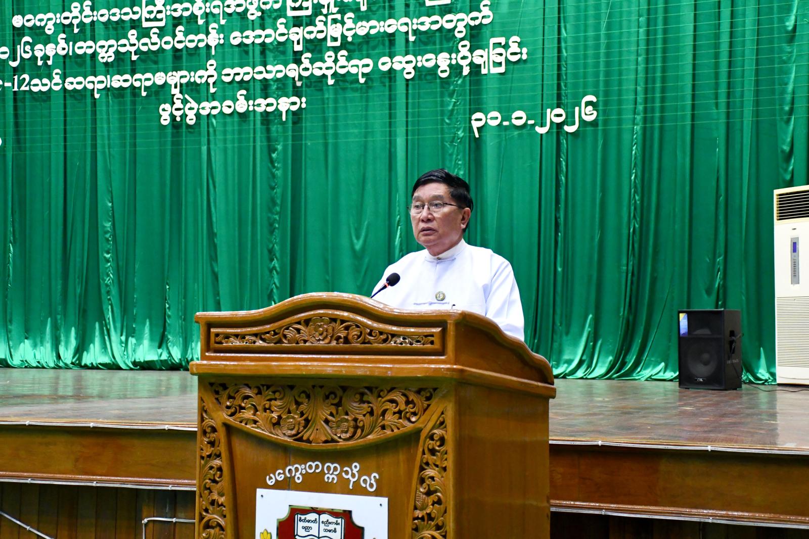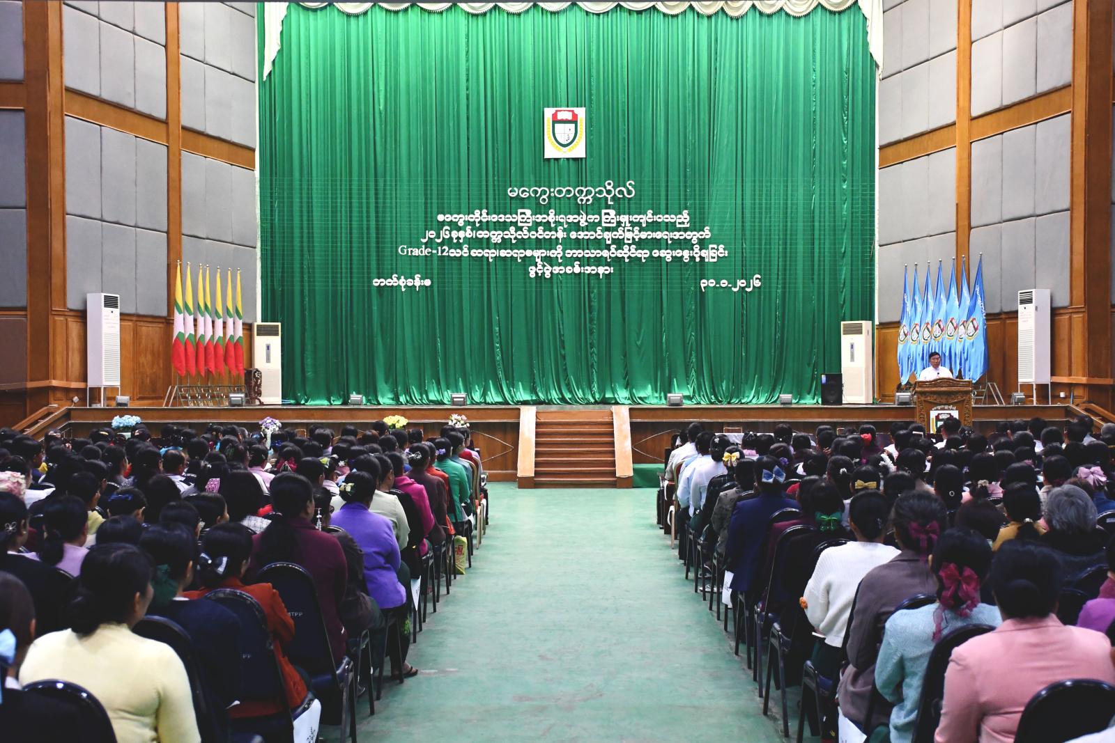 မကွေးတိုင်းဒေသကြီး ၂၀၂၅-၂၀၂၆ ပညာသင်နှစ် တက္ကသိုလ်ဝင်စာမေးပွဲ အောင်ချက်မြင့်မားရေး ဘာသာရပ်ဆိုင်ရာ သိကောင်းစရာများ ဟောပြောပွဲကို ယနေ့နံနက်ပိုင်းက မကွေးတက္ကသိုလ် ဘတ်စုံသုံးခန်းမ၌ ကျင်းပပြုလုပ်ရာ မကွေးတိုင်းဒေသကြီးဝန်ကြီးချုပ်ဦးတင့်လွင်၊ နယ်မြေခံတပ်နယ်မှ အရာရှိကြီးများ၊ တရားလွှတ်တော် တရားသူကြီးချုပ်၊ တိုင်းဒေသကြီးအစိုးရအဖွဲ့ဝင်ဝန်ကြီးများ၊ တိုင်း/ ခရိုင်/ မြို့နယ်အဆင့် ဌာနဆိုင်ရာတာဝန်ရှိသူများ၊ တက္ကသိုလ်အသီးသီးမှ ပါမောက္ခချုပ်နှင့် ဒုတိယပါမောက္ခချုပ်များ၊ ဆရာ၊ ဆရာမများ တက်ရောက်ကြသည်။