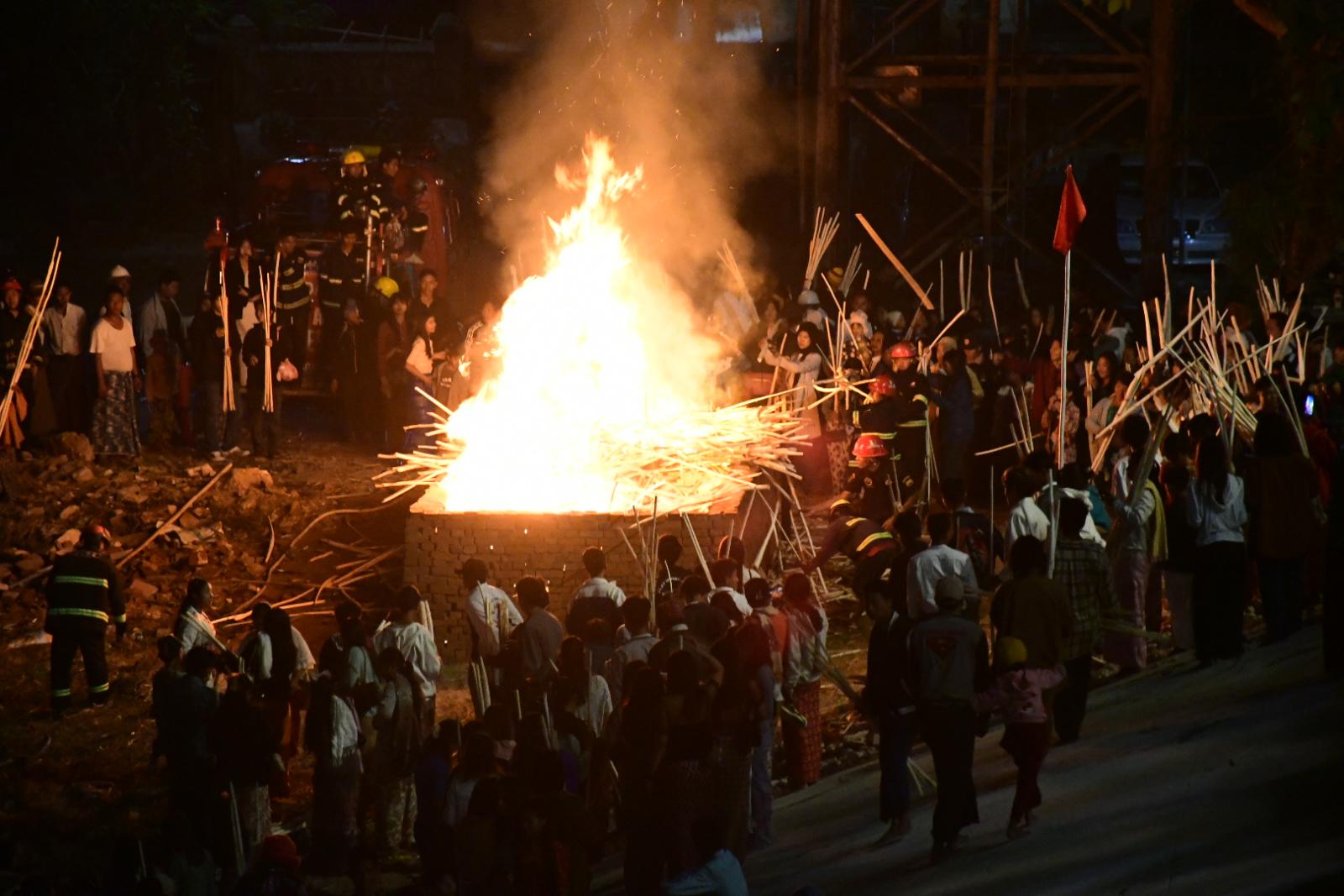 ပြည်မြို့၊ လေးဆူဓာတ်ပျော်ရွှေဆံတော်စေတီတော်မြတ်ကြီး၌ နှစ်စဉ် တပို့တွဲလပြည့်နေ့ နံနက် အရုဏ်တက်ချိန်တိုင်း ကျင်းပမြဲဖြစ်သည့် (၁၀၂)ကြိမ်မြောက် ညံရိုးမီးပူဇော်ပွဲကို စေတီတော်တောင်ဘက်စောင်းတန်း "ဝလေးလုံး"စေတီတော်အနီး၌ ယနေ့နံနက် ၄ နာရီက စည်ကားသိုက်မြိုက်စွာကျင်းပရာ ဒေသခံများနှင့် အနယ်နယ်အရပ်ရပ်မှ ဘုရားဖူးလာပြည်သူများဖြင့် အထူးစည်ကားများပြားလျက်ရှိသည်။