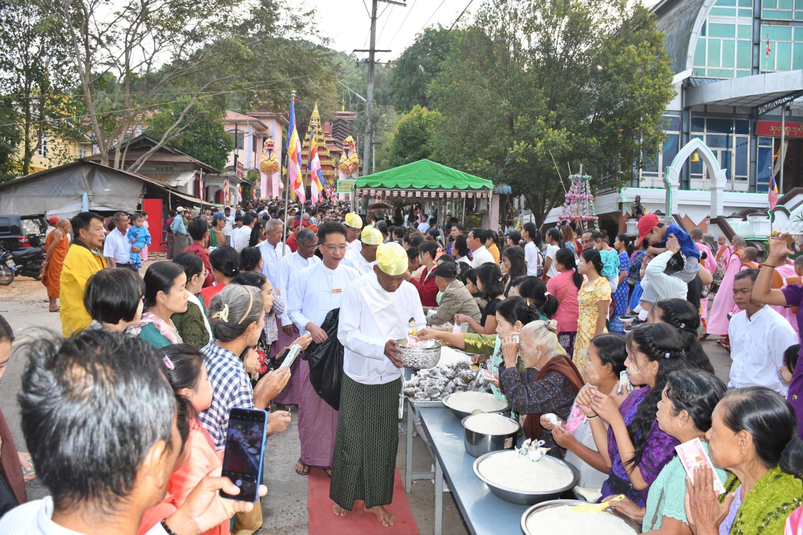 နံနက် အရုဏ်တက်ချိန်တွင် သထုံမြို့နယ်အတွင်းရှိ ကျောင်းတိုက်အသီးသီးတို့မှ ကြွရောက်တော်မူလာကြသည့် သံဃာတော်နှင့် သီလရှင်များအား စေတီတော်ဘဏ္ဍာတော်ထိန်း ဂေါပကအဖွဲ့၏ စီမံမှုဖြင့် အလှူရှင်အဖွဲ့အသီးသီးတို့မှ ဆွမ်းဆက်ကပ်ကြသည်။