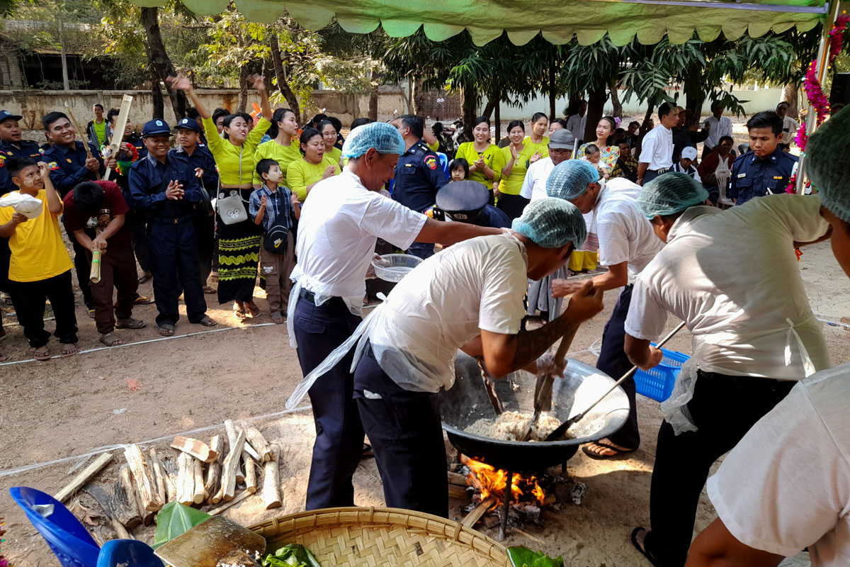 အခမ်းအနားတွင် ပြိုင်ပွဲဝင်အသင်းများ နေရာယူကြပြီး၊ မြို့နယ်စီမံခန့်ခွဲရေးနှင့်အုပ်ချုပ်ရေးကော်မတီဥက္ကဋ္ဌ ဦးသန်းလွင်က အဖွင့်အမှာစကားပြောကြားပြီး၊ အကဲဖြတ် အမှတ်ပေးဒိုင်အဖွဲ့ခေါင်းဆောင် အစိုးရစက်မှုလက်မှုသိပ္ပံ ကျောင်းအုပ်ဆရာမကြီး ဒေါက်တာ ရီရီမွန်က ပြိုင်ပွဲ စည်းကမ်းချက်များနှင့် အမှတ်ပေးစည်းမျဉ်းများကို ရှင်းလင်းဖတ်ကြားသည်။ ယင်းနောက် ဒေါက်တာရီရီမွန်က သတ်မှတ်ချိန်တွင် ပြိုင်ပွဲကို စတင်စေပြီး၊ ဌာနဆိုင်ရာများ၊ ရပ်ကွက်များ ပူးပေါင်း ပါဝင်သည့် ပြိုင်ပွဲဝင်အဖွဲ့များက စတင် ယှဉ်ပြိုင်ကြသည်။ အဆိုပါ ပြိုင်ပွဲတွင် မြို့နယ်အဆင့် ဌာနဆိုင်ရာ ၃၈ ခုနှင့် ရပ်ကွက် ၁၂ ရပ်ကွက် တို့ပူးပေါင်းပါဝင်သည့် ပြိုင်ပွဲဝင်အဖွဲ့ ၁၂ ဖွဲ့ဖြင့် ယှဉ်ပြိုင်ကြခြင်းဖြစ်ပြီး၊ ပြိုင်ပွဲစည်းကမ်း ၁၀ ချက်တွင် စည်းကမ်းချက် တစ်ချက်လျင် အမှတ် ၁၀ မှတ်စီဖြင့် စုစုပေါင်း အမှတ် ၁၀၀ ဖြစ်ကြောင်း သိရသည်။ ပြိုင်ပွဲသတ်မှတ်ချိန် တစ်နာရီပြည့်သည်နှင့် သတ်မှတ်စည်းကမ်းနှင့်အညီ မိမိတို့ယှဉ်ပြိုင်ခဲ့သည့် ထမနဲပန်းကန်များကို အကဲဖြတ် ဒိုင်များထံ ပေးပို့ပြီး အကဲဖြတ် အမှတ်ပေးဒိုင်များက စည်းကမ်းနှင့်အညီ ပထမ၊ ဒုတိယ၊ တတိယနှင့် နှစ်သိမ့်ဆု ၉ ဆု တို့ကို ရွေးချယ်ပေးခဲ့ကြသည်။