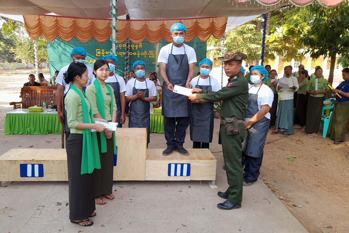 ယင်းနောက် ဆုပေးပွဲကိုဆက်လက် ကျင်းပရာ ပထမဆုကို စက်မှုအားမာန်အသင်း၊ ဒုတိယဆုကို ကုမုဒြာအသင်း၊ တတိယဆုကို ရဲဇာနည်အသင်းတို့က ရရှိခဲ့ကြပြီး၊ ပထမဆု ငွေကျပ် ၄ သိန်း၊ ဒုတိယဆု ငွေကျပ် ၃ သိန်း၊ တတိယဆု ငွေကျပ် ၂ သိန်းနှင့် ကျန် နှစ်သိမ့်ဆု ၉ ဆုအတွက် တစ်ဆုလျင် ငွေကျပ် တစ်သိန်း စီတို့ကို မြို့နယ်စီမံခန့်ခွဲရေးနှင့်အုပ်ချုပ်ရေးကော်မတီဥက္ကဋ္ဌနှင့် အဖွဲ့ဝင်များ၊ ဌာနဆိုင်ရာတာဝန်ရှိသူများက ပေးအပ်ချီးမြှင့်ခဲ့ကြပြီး အခမ်းအနားကို ရုပ်သိမ်းလိုက်သည်။ အဆိုပါအခမ်းအနားသို့ ဌာနဆိုင်ရာဝန်ထမ်းများ၊ကျောင်းသား/ကျောင်းသူများနှင့် ရပ်ကွက်ပြည်သူများ စုစုပေါင်းအင်အား ၈၅၀ ဦးခန့် တက်ရောက်ခဲ့ကြကြောင်း သိရသည်။