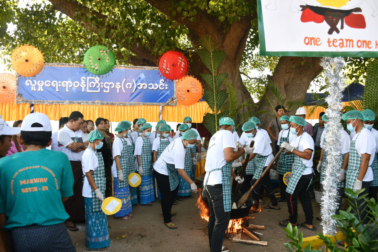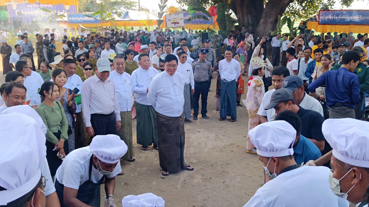 ဦးစွာ မကွေးတိုင်းဒေသကြီးဝန်ကြီးချုပ်နှင့် တာဝန်ရှိသူများက မြန်မာ့ရိုးရာထမနဲထိုးပြိုင်ပွဲ ဝင်ရောက်ယှဉ်ပြိုင်နေသည့် လုံခြုံရေးနှင့်နယ်စပ်ရေးရာဝန်ကြီးဌာန၊ စီးပွားရေးရာဝန်ကြီးဌာန၊ သယံဇာတရေးရာဝန်ကြီးဌာန၊ လူမှုရေးရာဝန်ကြီးဌာန၊ လမ်းပန်းဆက်သွယ်ရေးရာဝန်ကြီးဌာန၊ တိုင်းရင်းသားရေးရာဝန်ကြီးဌာနများမှ ကိုယ်စားပြုအသင်း (၁၃) သင်းတို့၏ တပျော်တပါး ထမနဲထိုးပြိုင်ပွဲဆင်နွှဲနေမှုနှင့် ပြိုင်ပွဲဝင်အသင်းကိုယ်စားပြုအကအဖွဲ့များ၏ ဖျော်ဖြေတင်ဆက်မှု များကို ကြည့်ရှု အားပေးခဲ့သည်။