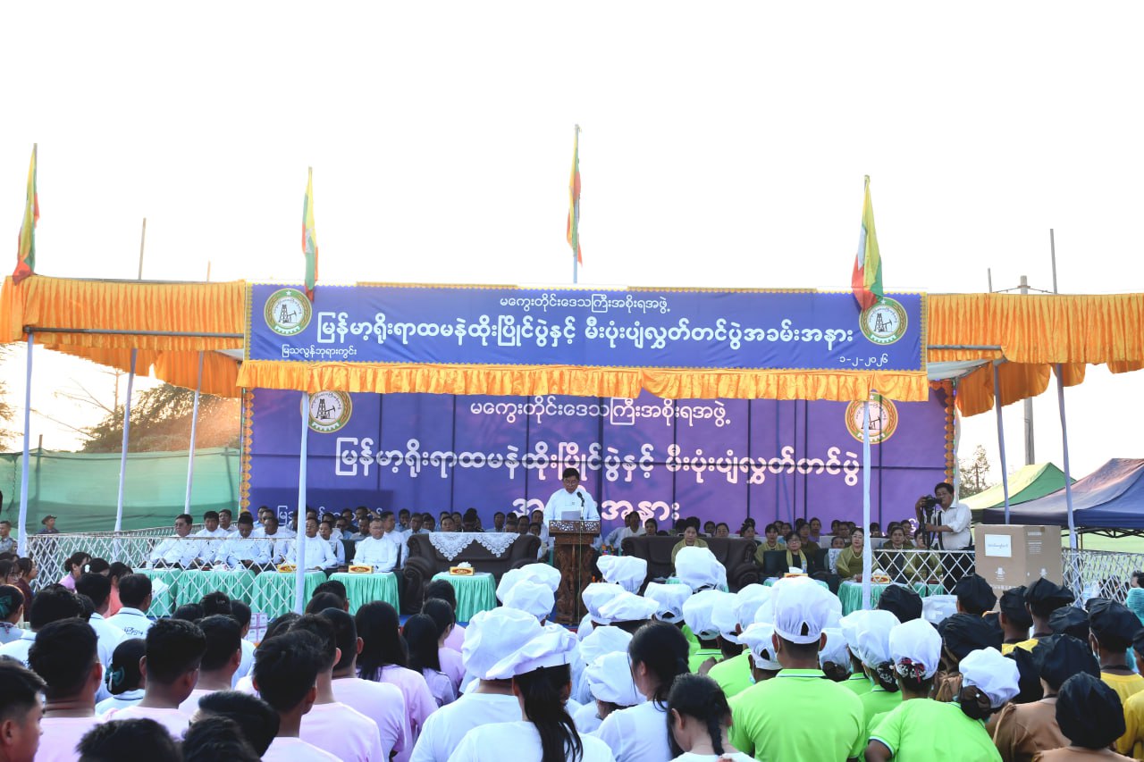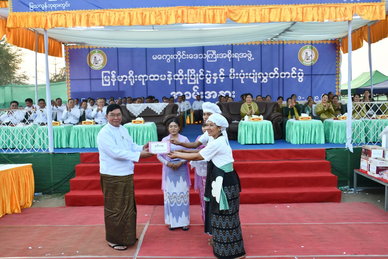 ထို့နောက် ဆုချီးမြှင့်ပွဲအခမ်းအနားကိုကျင်းပရာ မကွေးတိုင်းဒေသကြီးဝန်ကြီးချုပ်က အမှာစကားပြောကြားရာတွင် မြန်မာ့ရိုးရာထမနဲထိုးပွဲတော်ကို မြန်မာတို့၏ ထုံးတမ်းအစဉ်အလာအရ ကောက်ဦးပေါ်စ တပို့တွဲလဆန်းအချိန်မှ လပြည့်နေ့တိုင်အောင် နိုင်ငံအနှံ့အပြားတွင် ခြိမ့်ခြိမ့်သဲကျင်းပလေ့ရှိပါကြောင်း၊ ထမနဲကို မြတ်စွာဘုရားရှင်နှင့် ရဟန်းသံဃာတော်များ၊ သက်ကြီး ရွယ်အိုများကို လှူဒါန်းခြင်းဖြင့် ဒါနကုသိုလ်ရရှိစေမှာဖြစ်သလို မြန်မာ့ရိုးရာယဥ်ကျေးမှု အစဥ်အလာ တစ်ရပ်ကို ထိန်းသိမ်းခြင်းဖြစ်ကြောင်း ၊ထမင်းနဲထိုးခြင်းမှစည်းလုံးညီညွတ်မှု၊ ပူးပေါင်းဆောင်ရွက်တတ်မှုနှင့် အချိန်ကိုစီမံခန့်ခွဲနိုင်မှုအစရှိသည့်အကျိုးကျေးဇူးများကိုရရှိမှာဖြစ်ပါကြောင်း၊ မိမိတို့ဘိုးဘွားအစဉ်အဆက် လက်ဆင့်ကမ်းထိန်းသိမ်းလာခဲ့တဲ့အတွက် မြန်မာနိုင်ငံ၊ မြန်မာလူမျိုး၊ မြန်မာစာပေ၊ မြန်မာ့ယဉ်ကျေးမှုတို့ တည်တံ့နေခြင်းလည်းဖြစ်ပါကြောင်း၊ မိမိမြန်မာလူမျိုးတို့၏ ယဉ်ကျေးမှုအစဉ်အလာကောင်းများ၊ ရိုးရာယဉ်ကျေးမှုပွဲတော်များကို မပျောက်ပျက်အောင်မျိုးဆက်သစ်လူငယ်များက ထိန်းသိမ်းသွားရန် လိုအပ်ကြောင်းနှင့်မြန်မာ့ဓလေ့ထုံးစံများအရှည်တည်တံ့ရန်နှင့်ယဉ်ကျေးမှု အစဉ်အလာကောင်းများ ကို အသိစိတ်ဓာတ်ရှိစွာဖြင့် လက်ဆင့်ကမ်းမျှဝေဆောင်ရွက်ကြရန် ပြောကြားသည်။