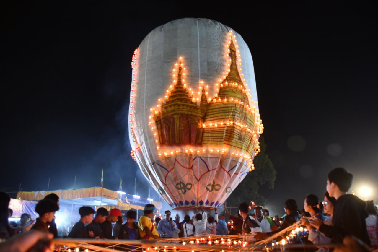 ဆက်လက်၍ ညပိုင်းတွင် မီးပုံးပျံလွှတ်တင်ပွဲအခမ်းအနားကို ကျင်းပရာ စိန်နပန်မီးပုံပျံ (၄) လုံး၊ ညမီးကြီးမီးပုံးပျံ (၁) လုံးနှင့် မီးပုံပျံငယ် (၃၀၀) တို့အား မကွေးတိုင်းဒေသကြီးဝန်ကြီးချုပ်နှင့် ဇနီး၊ မကွေးတပ်နယ်မှ ဗိုလ်ချုပ်သိန်းထွန်းဦး၊ တိုင်းဒေသကြီးတရားလွှတ်တော်တရားသူကြီးချုပ်၊ တိုင်းဒေသကြီးအစိုးရအဖွဲ့ဝင်ဝန်ကြီးများနှင့် ၎င်းတို့၏ဇနီးများ၊ ဌာနဆိုင်ရာတာဝန်ရှိသူများနှင့် ဧည့်ပရိတ်သတ်များက မီးထွန်းညှိ၍ လွှတ်တင်ကာ ထမနဲထိုးပြိုင်ပွဲနှင့်မီးပုံးပျံလွှတ်တင်ပွဲကို ဆင်နွှဲခဲ့ကြကြောင်း သိရသည်။