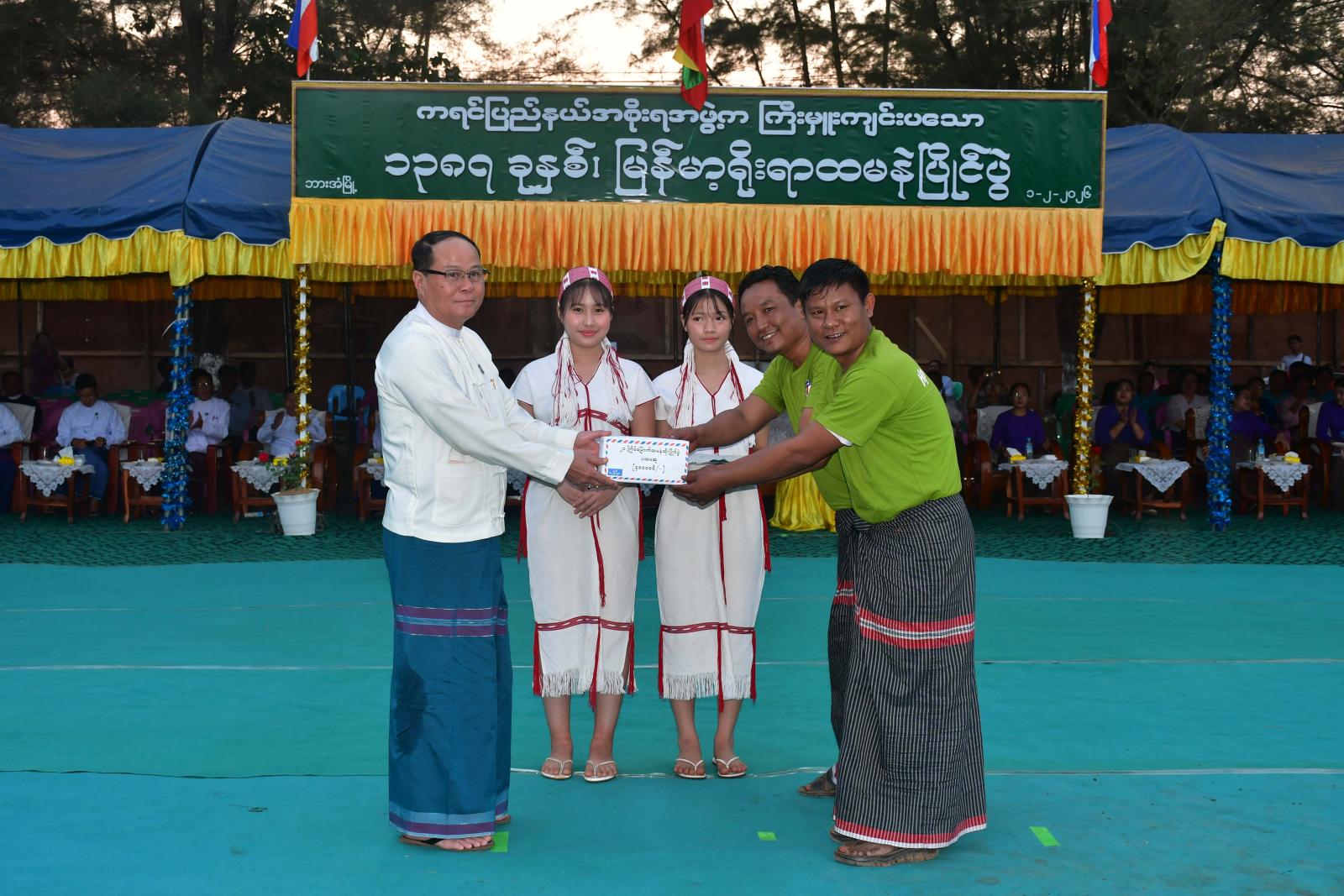 ထို့နောက် ဆုချီးမြှင့်ပွဲအခမ်းအနားကို ဆက်လက်ကျင်းပရာ ပြည်နယ်ဝန်ကြီးချုပ်က ပထမဆုရရှိသည့် ဘားအံတက္ကသိုလ်အသင်း၊ ဒုတိယဆုရရှိသည့် ဆည်မြောင်းနှင့်ရေအသုံးချမှုစီမံခန့်ခွဲရေးဦးစီးဌာနအသင်း၊ တတိယဆုရရှိသည့် ပညာရေးအသင်းနှင့် အခြားဆုရရှိသည့် ထမနဲထိုးအသင်းများအား ပြည်နယ်အဖွဲ့ဝင်များ၊ ပြည်နယ်အမျိုးသမီးရေးရာအဖွဲ့နှင့်မိခင်နှင့်ကလေးစောင့်ရှောက်မှု ကြီးကြပ်ရေးအဖွဲ့ အဖွဲ့ဝင်များက ဂုဏ်ပြုဆုများပေးအပ်ချီးမြှင့်ခဲ့ကြကြောင်း သတင်းရရှိသည်။