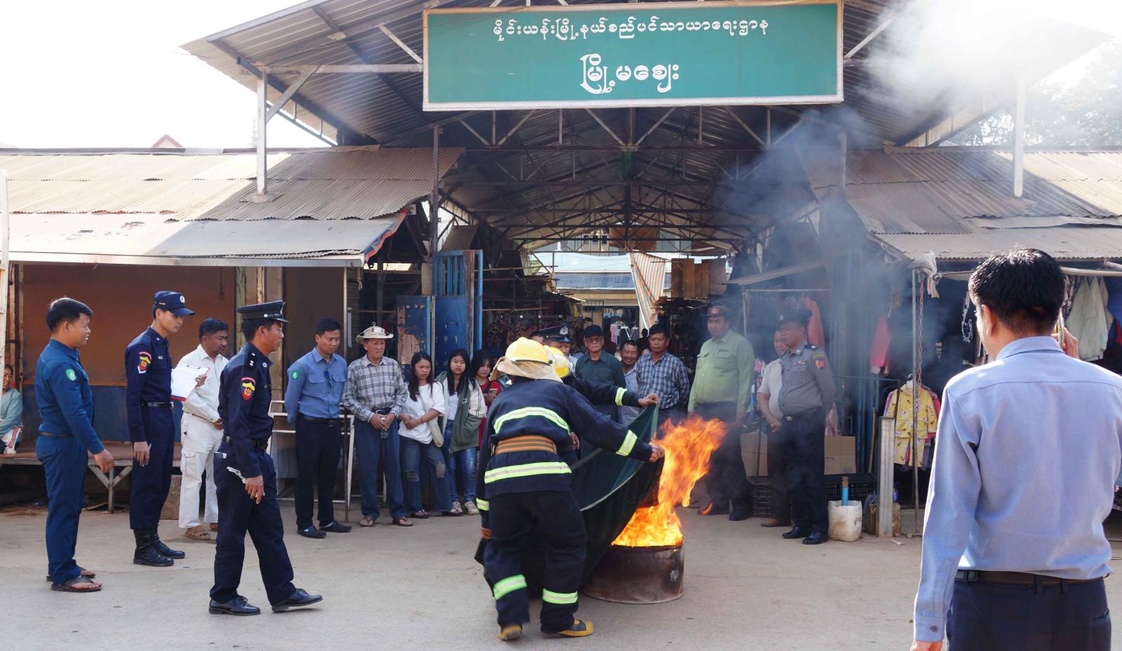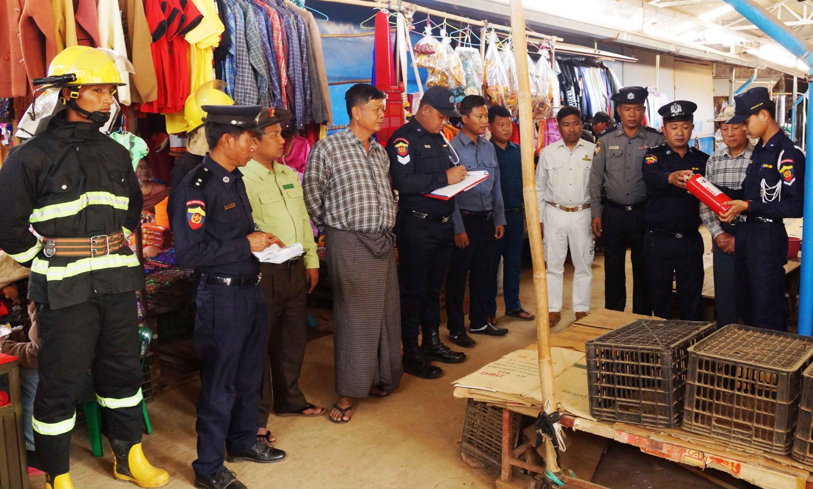 ထိုသို့ ဆောင်ရွက်ရာတွင် မြို့နယ်အတွင်းရှိ မီးဘေးလုံခြုံရေးနှင့်စပ်လျဉ်း၍ မိမိကွပ်ကဲမှုအောက်ရှိ မြို့နယ်ဒေသအတွင်း မီးလောင်မှုများမဖြစ်ပေါ်စေရေးနှင့် မီးဘေးအန္တရာယ်ကြိုတင်ကာကွယ်ရေးလုပ်ငန်းများကို လုပ်ငန်းစဉ် (၇)ရပ်နှင့်အညီ စက်ရုံ၊ အလုပ်ရုံ၊ စက်သုံးဆီဆိုင်၊ ဆေးဆိုင်များနှင့် ရပ်ကွက်များရှိ ကုန်စုံဈေးဆိုင်များ မီးလောင်မှုမဖြစ်ပေါ်စေရန် မြန်မာနိုင်ငံမီးသတ်တပ်ဖွဲ့ဉပဒေ၊ နည်းဉပဒေများ၊ မီးဘေးလုံခြုံရေး ကြိုတင်ကာကွယ်ရေးဆိုင်ရာ အကြံပြုချက်များအား လိုက်နာဆောင်ရွက်ရေးအသိပညာပေးခြင်းများ ဆောင်ရွက်ခဲ့ပြီး မြို့နယ်အုပ်ချုပ်ရေးမှူး ဦးအောင်ဇင်ဦး၊ မြို့နယ်မီးသတ်ဦးစီးမှူး ဦးဇော်မော်၊ မြို့နယ်စည်ပင်သာယာရေးဌာန အမှုဆောင်အရာရှိ ဦးကျော်စိုးလွင်၊ မြို့မစည်ပင်သာယာရေးအထောက်အကူပြုအဖွဲ့၊ မြို့မဈေးကော်မတီဝင်များနှင့် မီးသတ်တပ်ဖွဲ့ဝင်များတို့မှ ဈေးအတွင်းရှိ မီးသတ်ဆေးဘူးများစစ်ဆေးခြင်း၊ မီးသတ်ယာဉ်၊ မီးသတ်ဆေးဘူးများဖြင့် မီးငြှိမ်းသတ်ခြင်း လက်တွေ့သရုပ်ပြသကာ မြို့နယ်စည်ပင်သာယာရေးဝန်ထမ်းများနှင့် ဈေးသူ၊ ဈေးသားများအား လက်တွေ့မီးငြှိမ်းသတ်ခြင်းများ ဆောင်ရွက်ခဲ့ပြီး မြို့မဈေးအတွင်း မီးဘေးလုံခြုံရေးနှင့် ကြိုတင်ကာကွယ်ရေးဆိုင်ရာ လုပ်ငန်းများဆောင်ရွက်ရန် တာဝန်ရှိသူများက ပေါင်းစပ်ညှိနှိုင်း ဆွေးနွေးခဲ့ကြကြောင်း သိရသည်။