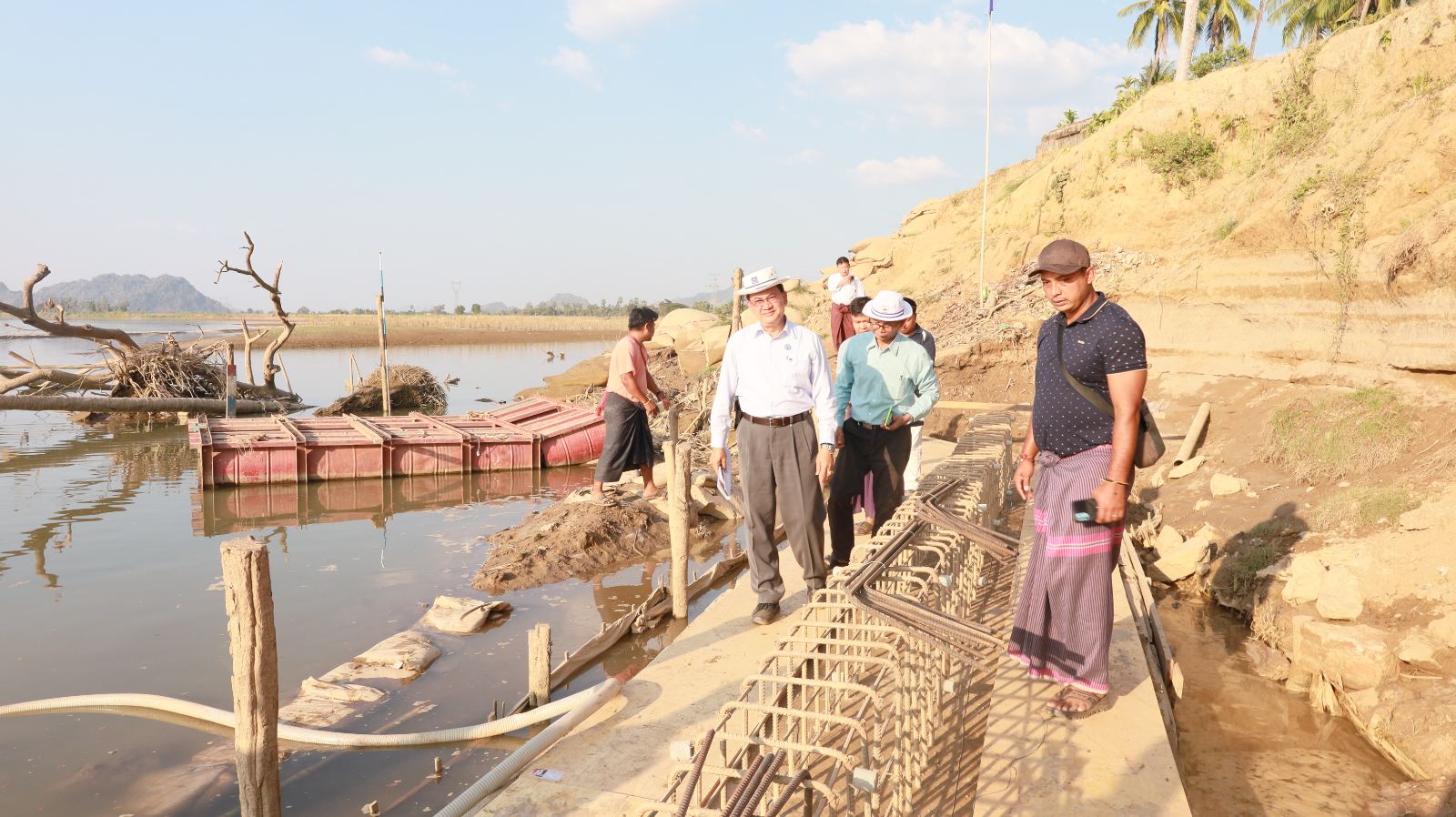 ကော့လှိုက်ကျေးရွာ သံလွင်မြစ် ကမ်းပြိုကာကွယ်ရေးလုပ်ငန်း ဘိုးပိုင်အခြေပြုကျောက်စီမြေထိန်းနံရံတည်ဆောက်ခြင်းလုပ်ငန်း အလျားပေ (၁၀၀၀)အား အမျိုးသားသဘာဝဘေးအန္တရာယ်ဆိုင်ရာ စီမံခန့်ခွဲမှုကော်မတီ၏ ခွင့်ပြုရန်ပုံငွေကျပ် ၁၆၂၀ ဒသမ ၄၆ သန်းဖြင့် သံလွင်နဂါးကုမ္ပဏီ နှင့် ဒေါနဂုဏ်ကုမ္ပဏီတို့မှ ၂၀၂၅ ခုနှစ် စက်တင်ဘာ ၁၉ ရက် စတင်ဆောင်ရွက်လျက်ရှိပြီး ၂၀၂၆ ခုနှစ် မေလကုန်တွင် အပြီးဆောင်ရွက်မည်ဖြစ်ကာ လုပ်ငန်းဆောင်မှုရာခိုင်နှုန်း (၆၁)ရာခိုင်နှုန်း ပြီးစီးပြီဖြစ်ကြောင်းသိရသည်။