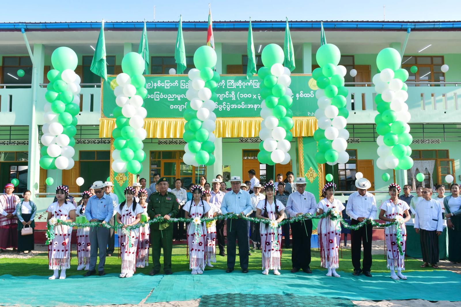 ယင်းနောက် ကျောင်းဆောင်သစ်လွှဲပြောင်းပေးအပ်ပွဲအခမ်းအနားကို အဆိုပါကျောင်းဆောင်သစ်ရှေ့၌ ဆက်လက်ကျင်းပရာ ပြည်နယ်ဝန်ကြီးချုပ်က မိဘများအနေဖြင့် မိမိတို့၏သားသမီးများကို အထက်တန်းအဆင့်ပြီးမြောက်အောင်သင်ကြားပေးကြရန်၊ ပညာသင်ကြားခွင့်ကို လမ်းကြောင်းမှန်သို့ ရောက်အောင်လမ်းညွှန်ပေးကြရန်၊ ကျောင်းကော်မတီများ၊ အကျိုးတော်ဆောင်များကလည်း ကျောင်းဝင်နှုန်းမြင့်မားလာစေရေး ကျောင်းနေမြဲရေးတို့အတွက် ကြီးကြပ်ပံ့ပိုးပေးကြရန်နှင့် ဆရာ၊ဆရာမများအနေဖြင့်လည်း တပည့်များအပေါ် ရင်ဝယ်သား၊သမီးကဲ့သို့စိတ်ထားမွန်မြတ်စွာဖြင့် စေတနာအရင်းခံ၍ ကျွမ်းကျင်တတ်မြောက်အောင် သင်ကြားပေးကြရန် တိုက်တွန်းပြောကြားသည်။
