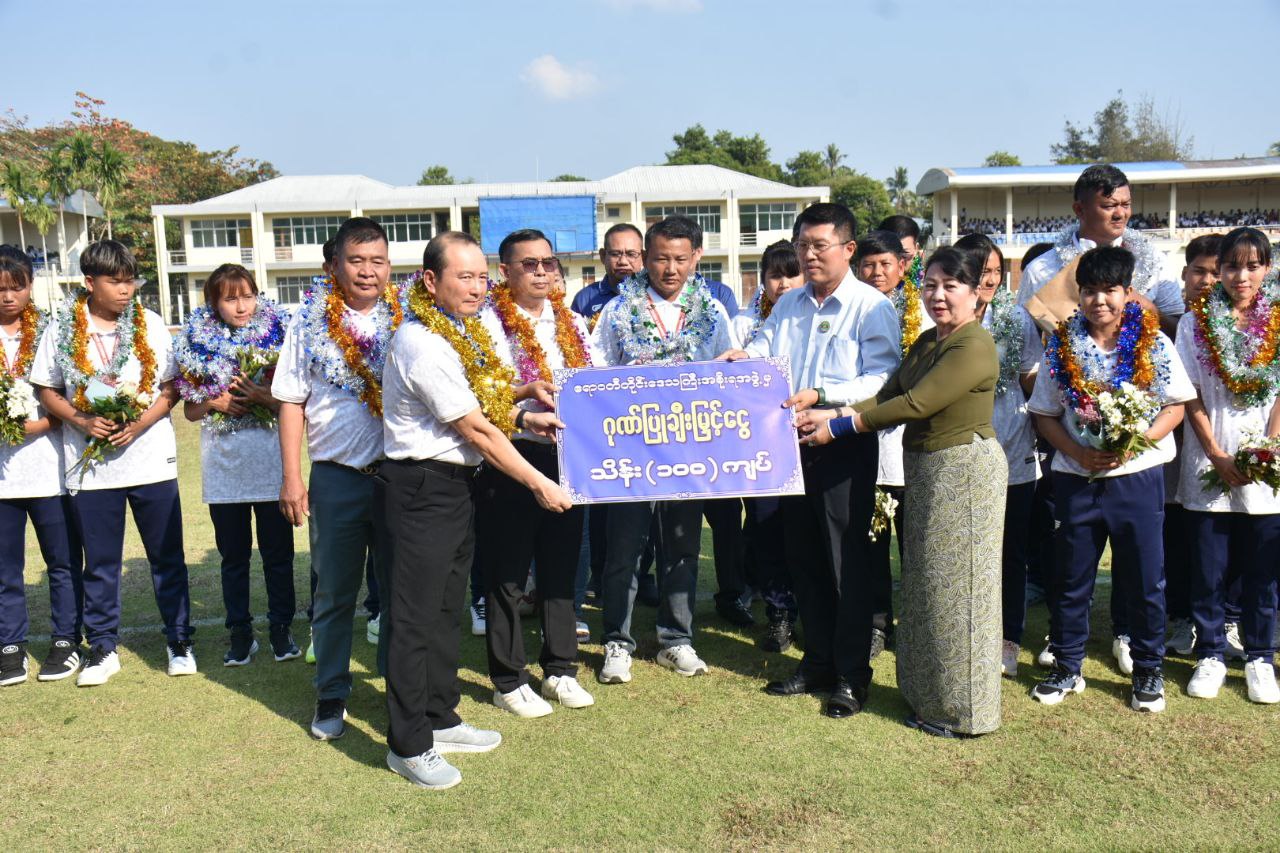 ဦးစွာ တိုင်းဒေသကြီးဝန်ကြီးချုပ်နှင့် ဇနီး၊ အစိုးအစိုးရအဖွဲ့ဝင် ဝန်ကြီးများနှင့်ဇနီးများ၊ အခမ်းအနားသို့ တက်ရောက်လာသူများက Ayeyarwady Women Football Club-Champion အသင်းအား ဂုဏ်ပြုပန်းစည်းများဖြင့် ကြိုဆိုဂုဏ်ပြုခဲ့ကြသည်။ ဆက်လက်၍ Ayeyarwady Women Football Club-Champion အသင်းအား ဂုဏ်ပြုချီးမြှင့်ငွေများကို တိုင်းဒေသကြီးဝန်ကြီးချုပ်နှင့် ဘောလုံးဝါသနာရှင် ပြည်သူများက ချီးမြှင့်ပေးအပ်ခဲ့ပြီးနောက် တိုင်းဒေသကြီးဝန်ကြီးချုပ်အား ဆုဖလားအပ်နှံ၍ Champion အသင်းနှင့်အတူ စုပေါင်းမှတ်တမ်းတင် ဓာတ်ပုံရိုက်ကူးခဲ့ကြသည်။ ယင်းနောက် Ayeyarwady Women Football Club-Champion အသင်းမှ အားကစားသမားများနှင့် ပြည်သူများအား မိတ်ဆက်ပေးခဲ့ပြီး တိုင်းဒေသကြီးဝန်ကြီးချုပ်နှင့် ဧည့်သည်တော်များသည် ဧရာဝတီ FC အမျိုးသမီးဘောလုံးအသင်းနှင့် ဧရာဝတီ Training Centreအမျိုးသမီးဘောလုံးအသင်း ချစ်ကြည်ရေးဘောလုံးပွဲကို ကြည့်ရှုအားပေးခဲ့သည်။