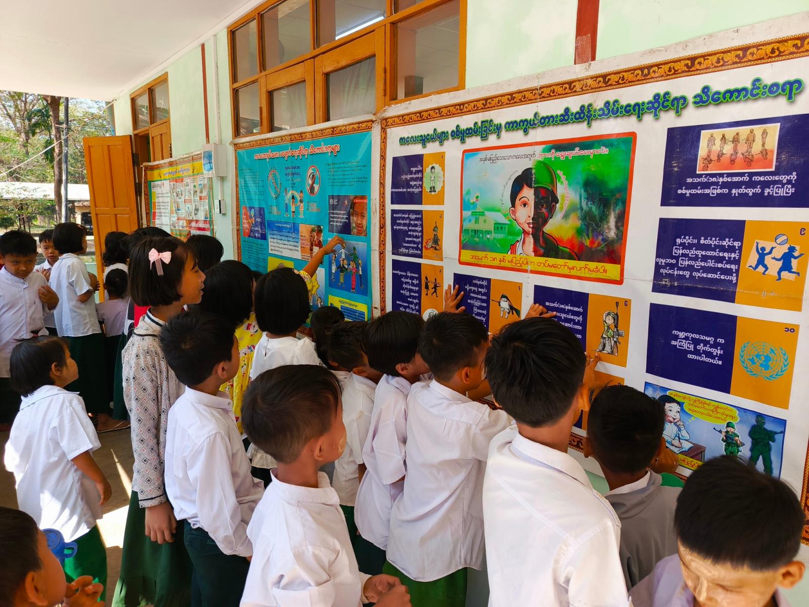 အဆိုပါ အသိပညာပေးလုပ်ငန်းတွင် ပြန်ကြားရေးနှင့်ပြည်သူ့ဆက်ဆံရေးဦးစီးဌာနမှ ကျောင်းသူ/ကျောင်းသားများ ဖတ်ရှုလေ့လာနိုင်ရန် ကလေးကဗျာများ၊ ရုပ်ပြပုံပြင်များ၊ စာစောင်များစသည့် ကလေးများအသိပညာတိုးပွားရေး စာအုပ်စာပေများနှင့် စာဖတ်ရှိန်မြှင့်တင်ရေး၊ ကလေးအလုပ်သမားပပျောက်ရေး စသည့်အသိပညာပေး နံရံကပ်စာစောင်များတို့ကို ခင်းကျင်းပြသရာ ကျောင်းသား၊ ကျောင်းသူများမှစိတ်ပါ၀င်စားစွာ ကြည့်ရှုလေ့လာခဲ့ကြောင်း သိရသည်။