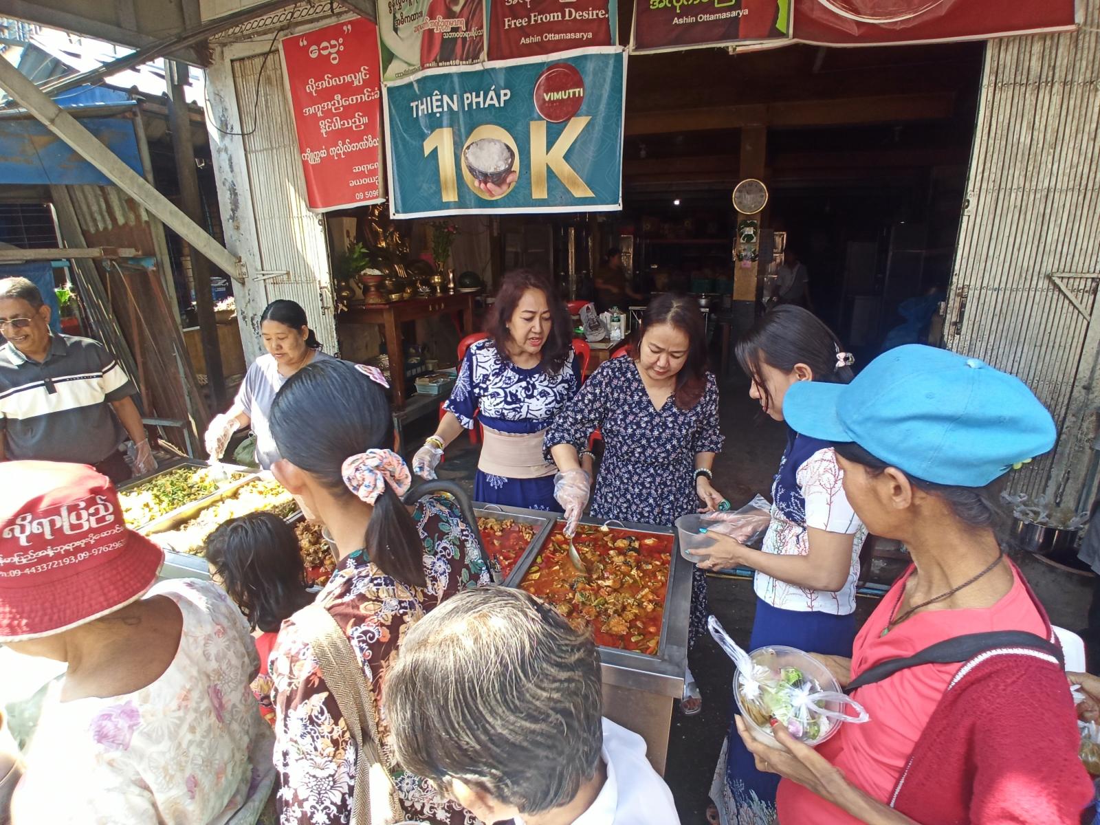 ဦးစွာ ဆရာလေးခယဝယဉာဏီက ဦးဆောင်ကာ ကုသိုလ်ယူမိဘပြည်သူများက လှူဒါန်းသည့် အလှူရှင်တို့အား မေတ္တာပို့ဆုတောင်းပေးကြပြီး သာဓု (၃) ကြိမ်ခေါ်ဆိုကာ အဟာရဒါကုသိုလ်ပြုပွဲစတင်ကျင်းပသည်။ အဆိုပါလှူဒါန်းပွဲသည် ဆေးရုံတက်ရောက်ကုသနေသူများ၊ အနှေးယာဥ်လုပ်သားများ၊ ရပ်ကွက်နေပြည်သူများအား တစ်နေ့တာ စားသောက်ရေးအဆင်ပြေစေရန် ရည်ရွယ်လှူဒါန်းရခြင်းဖြစ်ကြောင်း သိရသည်။ စားသောက်စရာများ လာရောက်ထုတ်ယူသူများကလည်း အလှည့်ကျတန်းစီ၍ စည်းကမ်းရှိစွာ လာရောက်ထုတ်ယူကြသည်။