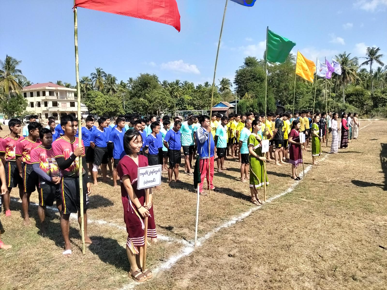ထို့နောက်ယှဉ်ပြိုင်ကစားကြမည့် ဘောလုံးအသင်း (၈)သင်းရှိအားကစားသမားများမှ သစ္စာအဓိဌာန် (၄) ချက်အားသီဆိုခြင်း မှတ်တမ်းတင်ဓါတ်ပုံများရိုက်ခြင်းတို့ပြုလုပ်ပြီး သပေါ့ကန်ကျေးရွာ ဘောလုံးအသင်းနှင့် သဲကုန်းကျေးရွာဘောလုံးအသင်းတို့မှ ပြိုင်ပွဲစတင်ယှဉ်ပြိုင်ကစားကြရာ ရွှေသောင်ယံလှုပ်ရှားစစ်ဗျူဟာမှူးမှ ဘောလုံးအား ကွင်းအတွင်းသို့ ကန်ပေးပြီးပြိုင်ပွဲကိုဖွင့်လှစ်ပေးပါသည်။