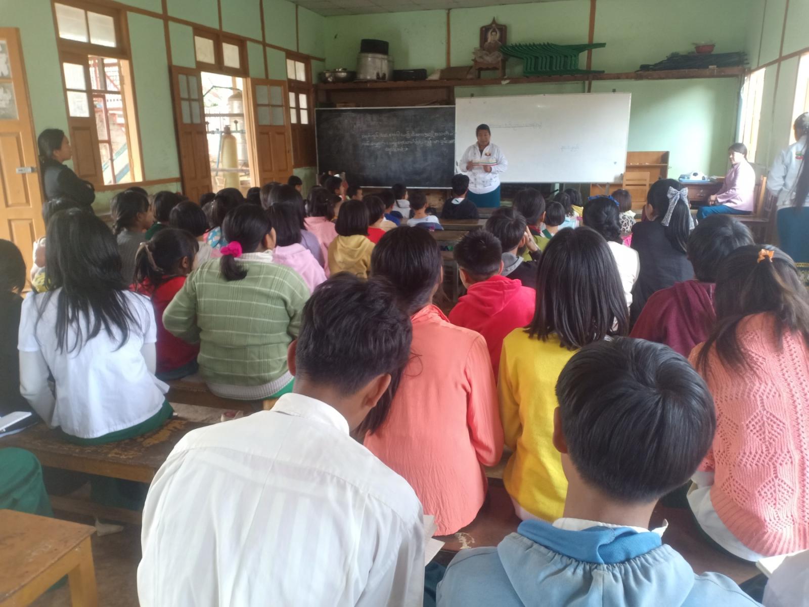 အဆိုပါဟောပြောပွဲတွင် ပြန်ကြားရေးနှင့်ပြည်သူ့ဆက်ဆံရေးဦးစီးဌာန၊ ကျောက်မဲခရိုင်ရုံးမှ ဒုတိယဦးစီးမှုး ဒေါ်နန်းခင်မြတ်ဝါက စာဖတ်ခြင်းအကျိုးခေါင်းစဉ်ဖြင့် ဟောပြောခဲ့ပြီး ကျောင်းသား ကျောင်းသူလေးများအား အချိန် ၁ နာရီခန့်အချိန်ပေး၍ ကာတွန်း၊ ရုပ်ပြ စာအုပ်စာစောင်များ ဖတ်ရှုစေခဲ့သည်။