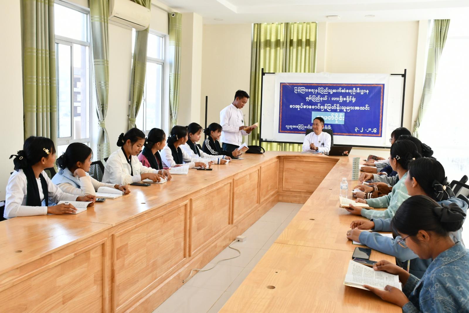ဆက်လက်၍ စာရေးဆရာမခင်နှင်းယု၏ “အောင်မြင်သောနေ့” စာအုပ်ဖြင့် စာဖတ်ဝိုင်းအား ကျင်းပရာ တက်ရောက်လာသည့် တက္ကသိုလ်အဆင့် ကျောင်းသားကျောင်းသူများက စာအုပ်ပါ အကြောင်းအရာများအား အသီးသီးဖတ်ကြားဆွေးနွေးခဲ့ပြီး လက်ထောက်ညွှန်ကြားရေးမှူးက ပြန်လည်ဖြည့်စွက်ဆွေးနွေးပေးခဲ့ကြောင်း သိရသည်။