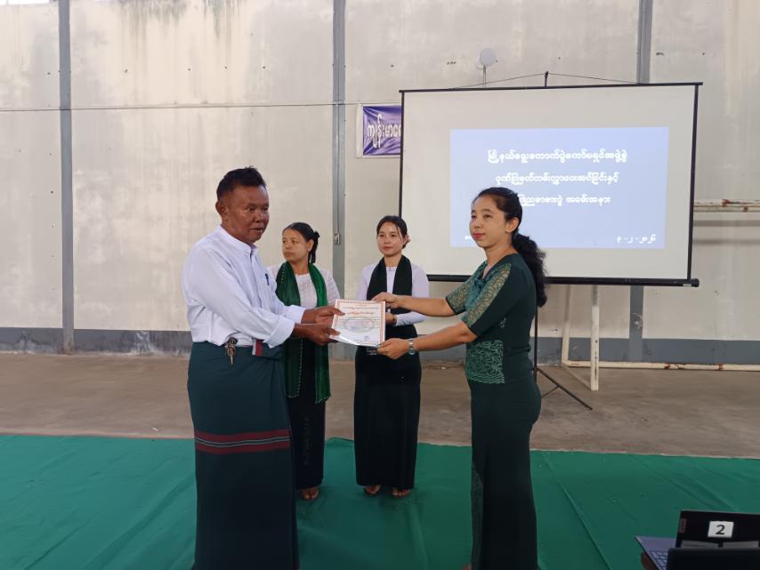 ဆက်လက်၍ ရွေးကောက်ပွဲအောင်မြင်အောင် စွမ်းစွမ်းတမံပူးပေါင်းဆောင်ရွက်ခဲ့ကြသော မြို့နယ်ရွေး ကောက်ပွဲကော်မရှင်အဖွဲ့ခွဲ အဖွဲ့ဝင်များ၊ ရပ်ကွက်/ကျေးရွာအုပ်စုရွေးကောက်ပွဲကော်မရှင်အဖွဲ့ခွဲဥက္ကဋ္ဌနှင့်အဖွဲ့ဝင်များ၊ နည်းပညာအထောက်အကူပြုအဖွဲ့ဝင်များအား သက်ဆိုင်ရာတာဝန်ရှိသူများက ဂုဏ်ပြုမှတ်တမ်းလွှာများ ပေးအပ်ချီးမြှင့်ခဲ့ပြီး ဌာနဆိုင်ရာအကြီးအကဲများအား လက်ဆောင်ပစ္စည်းများ ပေးအပ်ခဲ့ကြောင်း သိရသည်။
