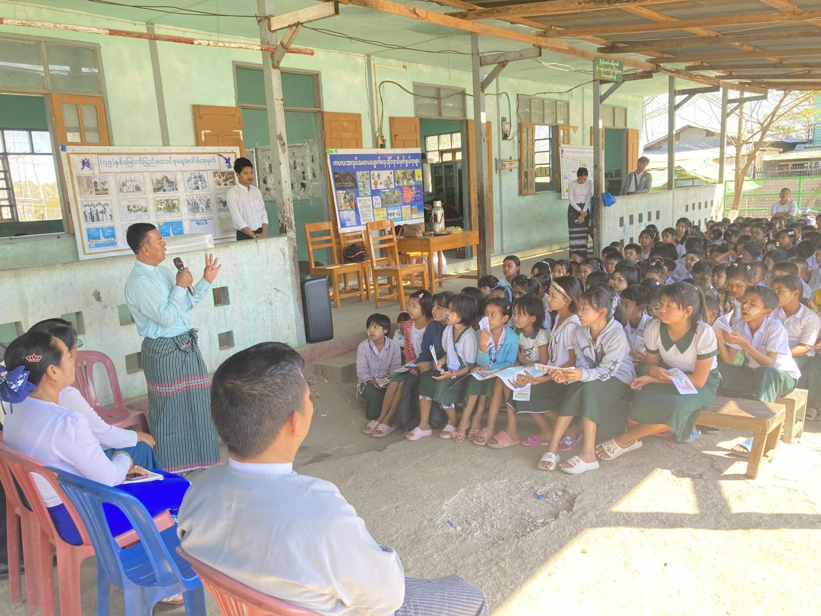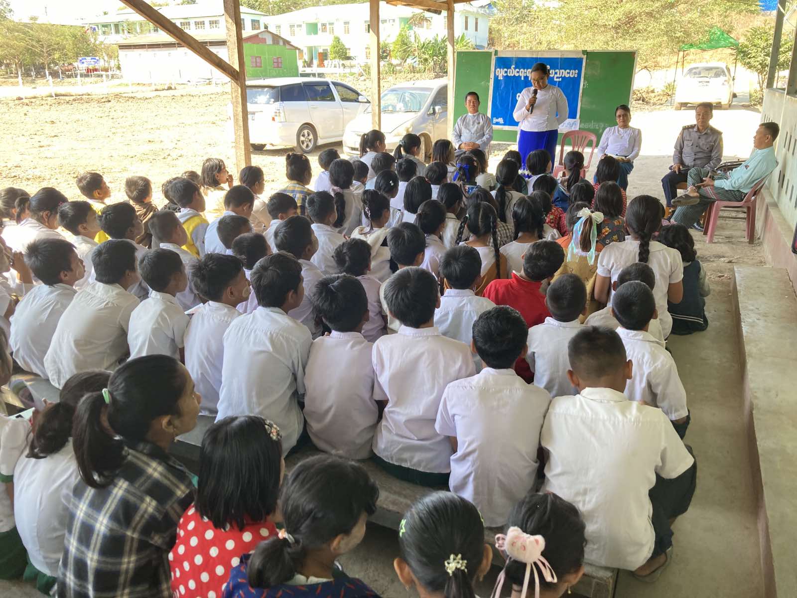 အဆိုပါ ဟောပြောပွဲ ဆောင်ရွက်ရာတွင် အခြေခံပညာမူလတန်း (မြန်မာနန်း)ကျောင်း၌ မြို့နယ်ပညာရေးမှူး ဦးမိုးကျော်၊ ပြန်ကြားရေးနှင့် ပြည်သူ့ဆက်ဆံရေး ဦးစီးဌာန၊ လက်ထောက် ညွှန်ကြားရေးမှူး ဒေါ်မာမာရီ၊ လူကုန်ကူးမှုတားဆီးနှိမ်နှင်းရေးရဲတပ်ဖွဲ့ ဒုတိယရဲမှူး သက်ဇော်ထွန်း၊ အလုပ်ရုံနှင့် အလုပ်သမားဥပဒေ စစ်ဆေးရေးဦးစီးဌာန၊ လက်ထောက်ညွှန်ကြားရေးမှူး ဒေါ်ဆုဝေဝေဖြိုး၊ ပတ်ဝန်းကျင်ထိန်းသိမ်းရေးဦးစီးဌာန၊ လက်ထောက်ညွှ န်ကြားရေးမှူး ဦးရန်နိုင်ထွန်း အလုပ်သမားညွှန်ကြားရေးဦးစီးဌာန၊ ဦးစီးအရာရှိ ဒေါ်ခိုင်ခိုင်စိုးတို့ က ကျောင်းသားလူငယ်များကို ပတ်ဝန်းကျင်ထိန်းသိမ်းရေးဆိုင်ရာအချက်များ၊ လူကုန်ကူးမှု ကင်းဝေးရေးဆိုင်ရာအချက်များ၊ ကလေးအလုပ်သမားပပျောက်ရေးဆိုင်ရာအချက်များ၊ ဗလငါးတန်ပြည့်စုံပြီး လူတော်လူကောင်းဖြစ်ကြစေရန်နှင့် အသိပညာ ဗဟုသုတကြွယ်ဝစေရန် သိရှိလိုက်နာရမည့်အချက်များကိုလည်းကောင်း အသီးသီးဟောပြောခဲ့ကြပြီး တာဝန်ရှိသူများက အသိပညာပေး လက်ကမ်းစာစောင်များကိုဖြန့်ဝေ ပေးခဲ့ကြသည်။