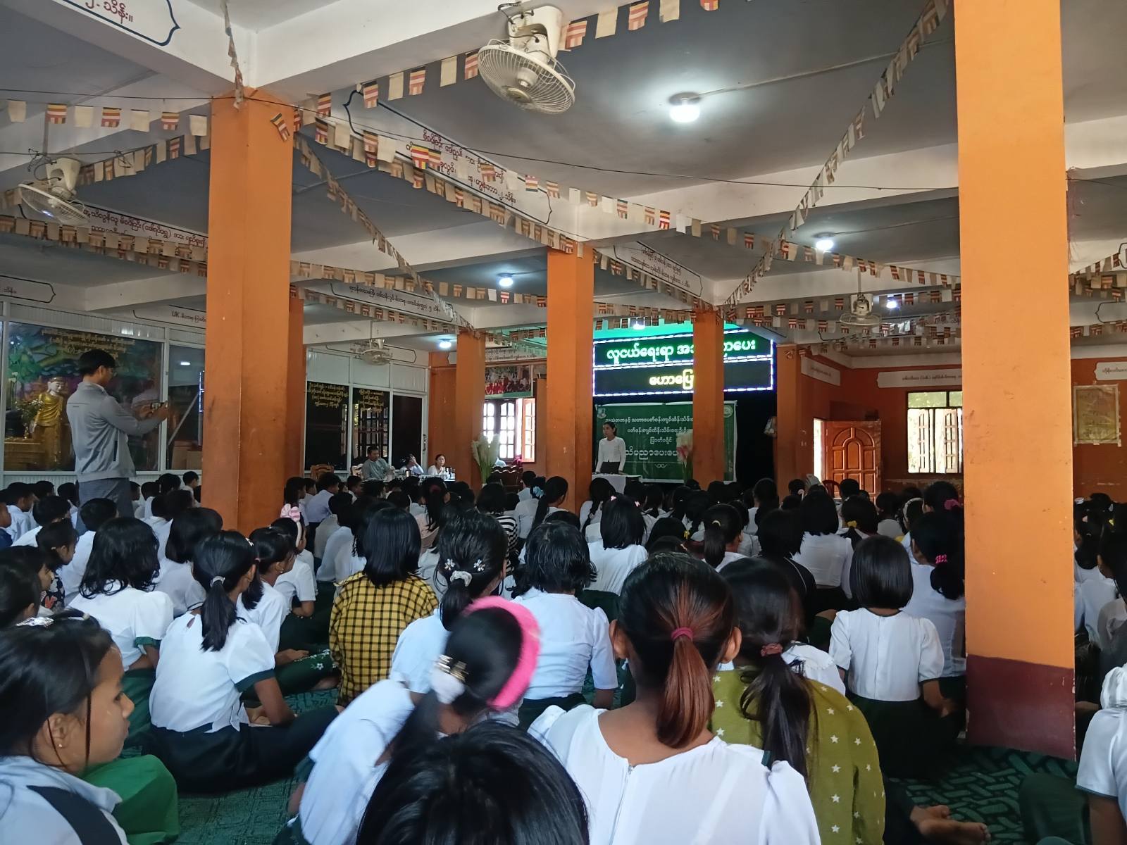 အလားတူ သစ္စာမဂ္ဂင် ဘုန်းတော်ကြီးသင်ပညာရေးကျောင်းတွင်လည်း လူငယ်ရေးရာ အသိပညာပေးဟောပြောပွဲကို ဆက်လက်ဆောင်ရွက်ခဲ့ရာ လူကုန်ကူးမှုတားဆီးနှိမ်နှင်းရေးရဲတပ်ဖွဲ့၊ တပ်ဖွဲ့စိတ် (၁) ရဲအုပ်နိုင်ထွန်း၊ ပတ်ဝန်းကျင်ထိန်းသိမ်းရေးဦးစီးဌာန၊ လက်ထောက် ညွှန်ကြားရေးမှူး၊ ဦးရန်နိုင်ထွန်း၊ အလုပ်သမားညွှန်ကြားရေးဦးစီးဌာန၊ ဦးစီးအရာရှိ၊ ဒေါ်ခိုင်ခိုင်စိုးနှင့်ပြန်ကြားရေးနှင့်ပြည်သူ့ဆက်ဆံရေးဦးစီးဌာန၊ဦးစီးအရာရှိ ဒေါ်ဆောင်းနှင်းဖြူတို့က ကျောင်းသားလူငယ်များ ဗလငါးတန်ဖွံ့ဖြိုးစေရေးဆိုင်ရာ ဆောင်ရန်၊ရှောင်ရန်အချက်များ၊ သိရှိလိုက်နာရမည့်အချက်များကို အသီးသီးဟောပြောခဲ့ကြပြီး ကျောင်းသားလူငယ်များက အသိပညာပေး နံရံကပ်စာစောင်များကို လေ့လာကြည့်ရှုခဲ့ကြကြောင်း သိရသည်။