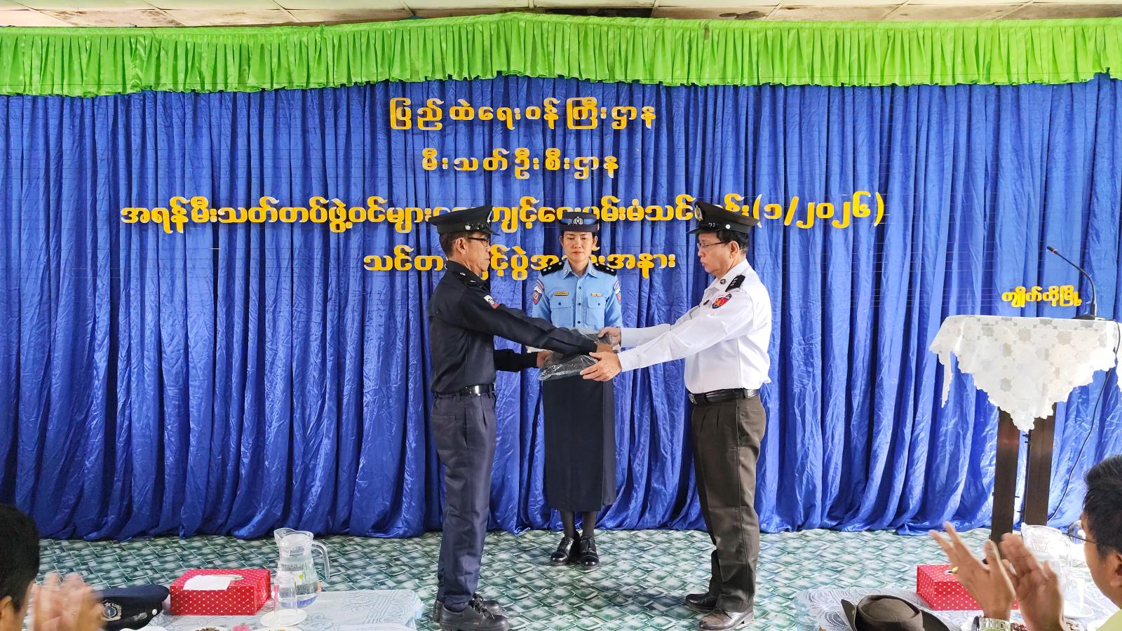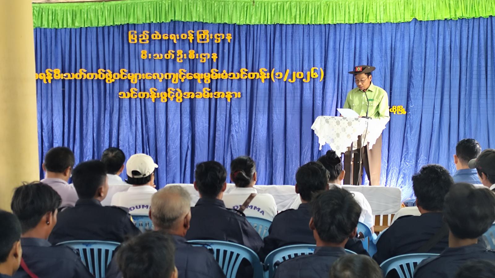 ထို့နောက် မြို့နယ်မီးသတ်ဦးစီးဌာန၊မြို့နယ်ဦးစီးအရာရှိ ဦးဝေယံအောင်က သင်တန်းဖွင့်လှစ်ရသည့် ရည်ရွယ်ချက်နှင့်သင်တန်းတွင်သင်ကြားပို့ချမည့် ဘာသာရပ်များကို ရှင်းလင်းပြောကြားပြီး သင်တန်းသားများအား အရန်မီးသတ်တပ်ဖွဲ့ဝင်ဝတ်စုံများကို မြို့နယ်စီမံခန့်ခွဲ ရေးနှင့်အုပ်ချုပ်ရေးကော်မတီဥက္ကဋ္ဌ ဦးတင့်လွင်နှင့် တာဝန်ရှိသူများက ပေးအပ်ခဲ့သည်။