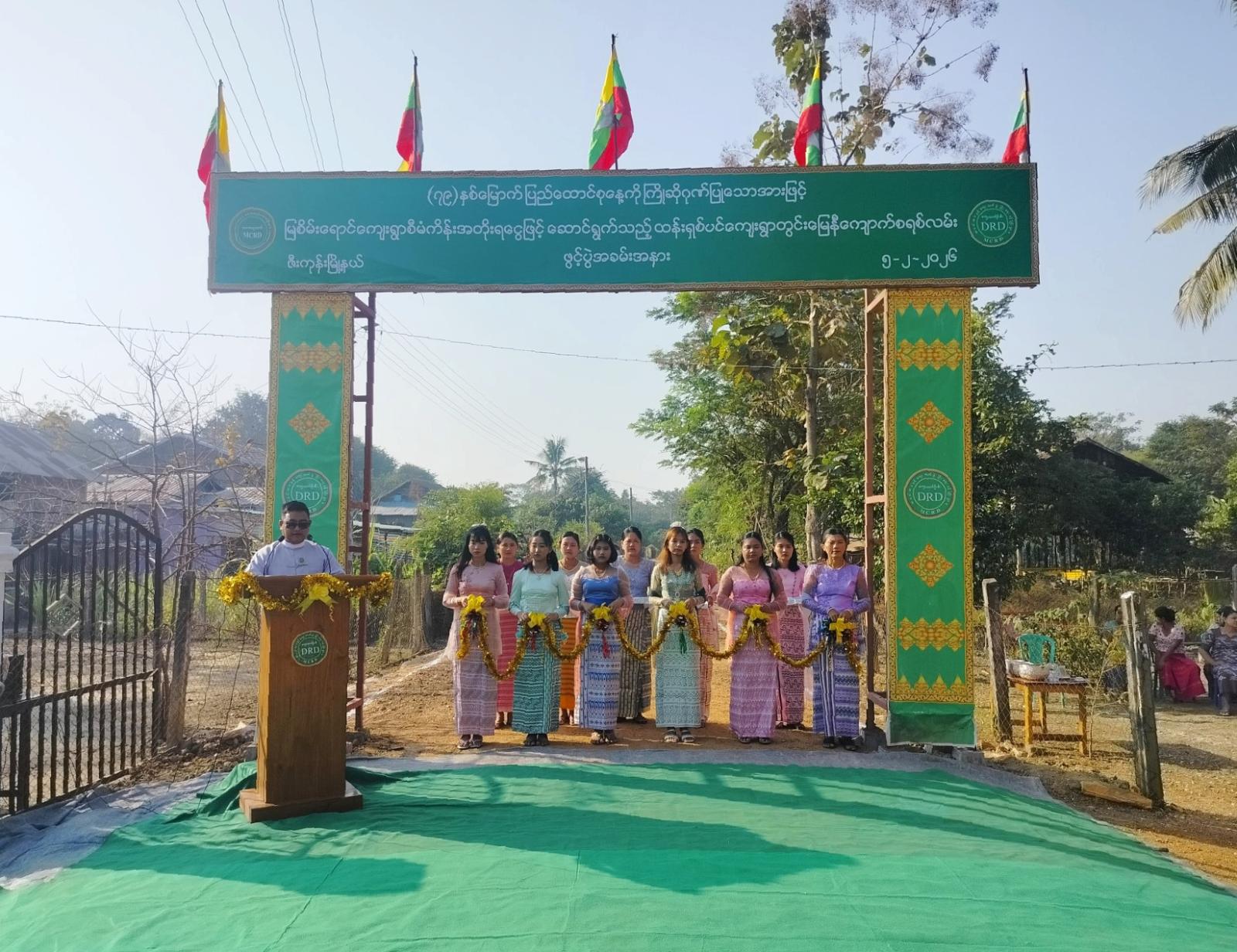 ရှေးဦးစွာ နတ်တလင်းခရိုင်ကျေးလက်ဒေသဖွံ့ဖြိုးတိုးတက်ရေးဦးစီးဌာန၊ ခရိုင်ဦးစီးမှူး ဦးဌေးလွင်စိုးက အဖွင့်အမှာစကားပြောကြားပြီး မြို့နယ်ဦးစီးမှူး ဦးပြည့်ဖြိုးအောင်က စီမံကိန်းလုပ်ငန်းအကောင်အထည်ဖော်ဆောင်ရွက်မှုနှင့်ပတ်သက်၍ ရှင်းလင်းတင်ပြခဲ့သည်။ ဆက်လက်၍ ကျေးရွာတွင်းမြေနီကျောက်စရစ်လမ်းအား ကျေးလက်ဒေသဖွံ့ဖြိုးတိုးတက်ရေးဦးစီးဌာန ခရိုင်ဦးစီးမှူး ဦးဌေးလွင်စိုး၊ မြို့နယ်စီမံခန့်ခွဲရေးနှင့်အုပ်ချုပ်ရေးကော်မတီဥက္ကဋ္ဌ ဦးမျိုးသက်အောင်၊ အတွင်ရေးမှူး ရဲမှူးကျော်မြင့်နိုင်၊ အဖွဲ့ဝင်(၁) ဗိုလ်မှူးကျော်လင်းသူ၊ မြို့နယ်ဦးစီးမှူး ဦးပြည့်ဖြိုးအောင်တို့က ဖဲကြိုးဖြတ်ဖွင့်လှစ်ပေးခဲ့ကြပြီး ကျေးရွာတွင်းမြေနီကျောက်စရစ်လမ်းအား ကြည့်ရှုကာ စုပေါင်းမှတ်တမ်းဓာတ်ပုံ ရိုက်ကူးခဲ့ကြသည်။