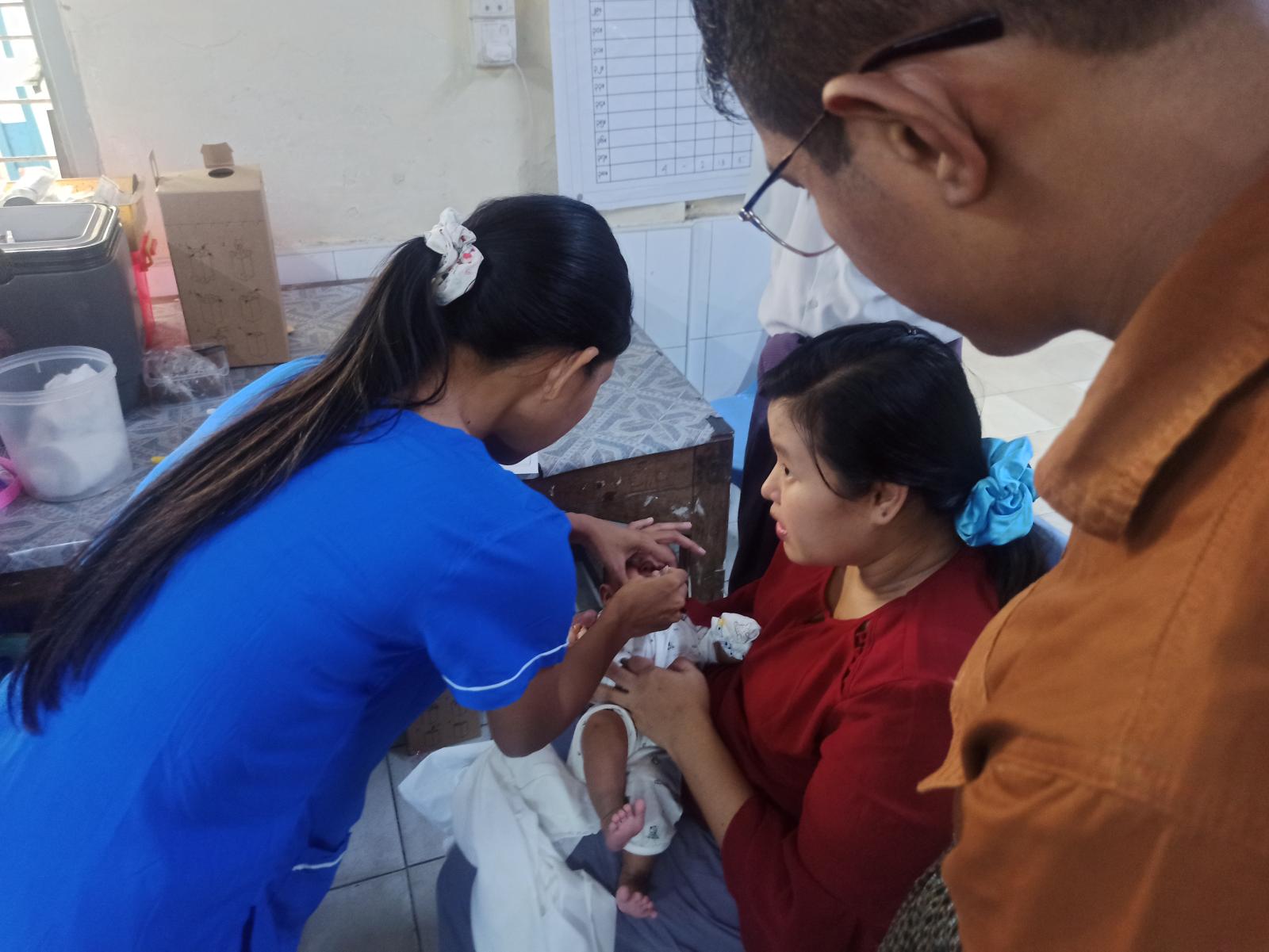 ရန်ကုန်တိုင်းဒေသကြီး သင်္ဃန်းကျွန်းမြို့နယ် မြို့နယ်ပြည်သူ့ကျန်းမာရေးဦးစီးဌာနတွင် မွေးကင်းစမှ အသက်၁နှစ်ခွဲအရွယ်အပိုင်းအခြားထိ ပုံမှန်ကာကွယ်ဆေး ထိုးနှံတိုက်ကျွေးခြင်းအား ဖေဖော်ဝါရီ ၄ ရက်နေ့ နံနက်ပိုင်းက စတင်၍ ကျန်းမာရေးဦးစီးဌာနဝန်ထမ်းများက စနစ်တကျမေးမြန်းဆွေးနွေးပြီး ဂရုတစိုက်ထိုးနှံ တိုက်ကျွေးပေးလျက်ရှိသည်။