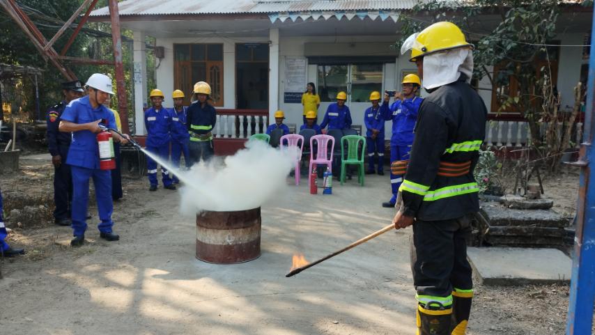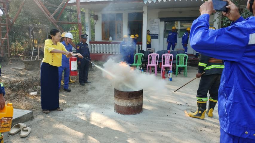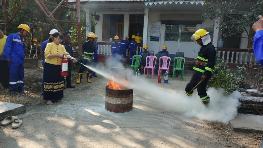 ထို့နောက် မီးသတ်တပ်ဖွဲ့ဝင်များနှင့် MPT ရုံး ဝန်ထမ်းများ ပူးပေါင်းကာ မီးသတ်ဆေးဗူးဖြင့် ငြိမ်းသတ်ခြင်း၊ ဖုံးအုပ်နည်းဖြင့် မီးငြိမ်းသတ်ခြင်းတို့ကို လက်တွေ့လေ့ကျင့် ဆောင်ရွက်ခဲ့ကြောင်း သိရသည်။