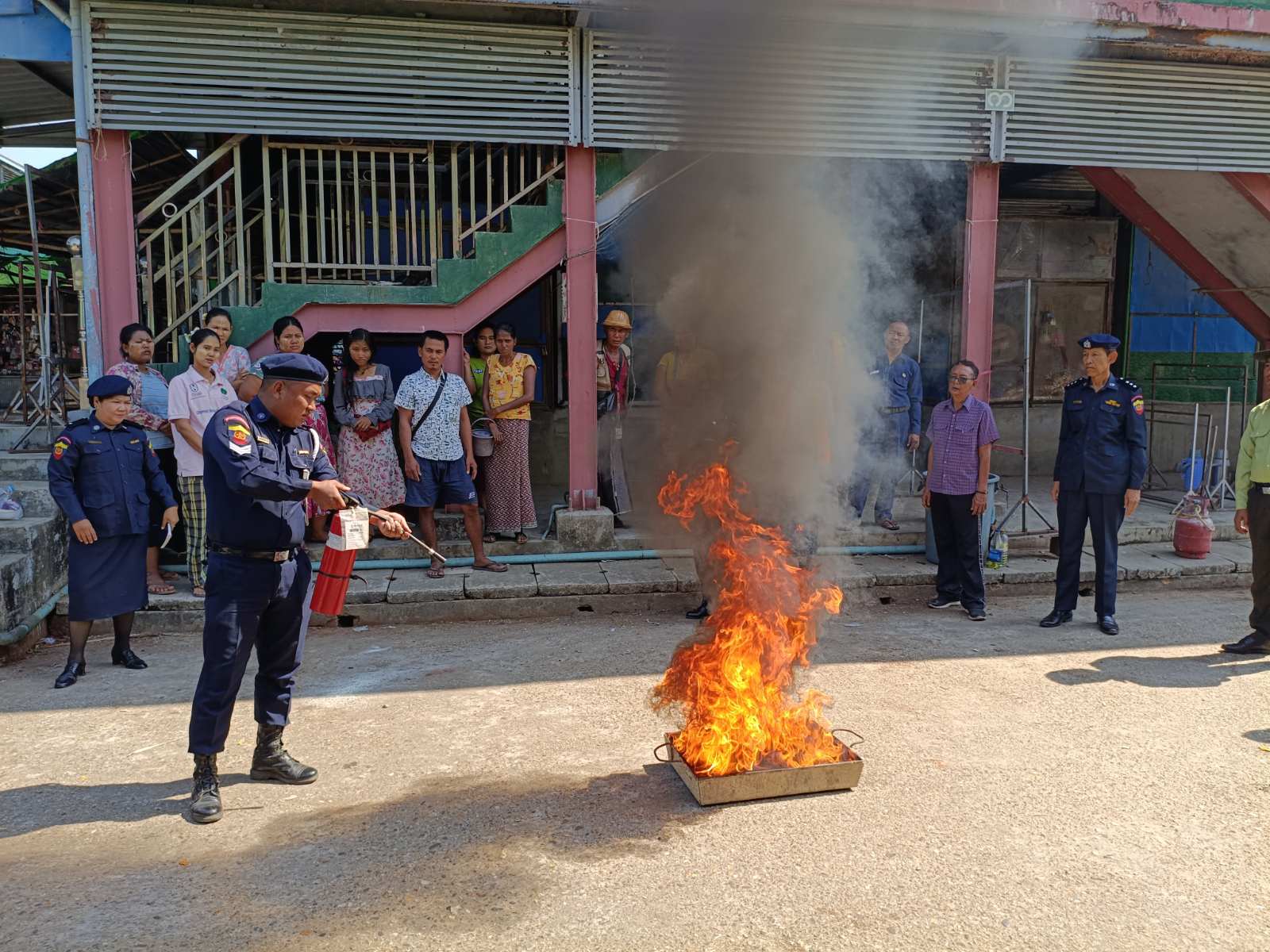 ထိုသို့ဆောင်ရွက်ရာတွင် ဆိပ်ကြီးခနောင်တိုမြို့နယ် ဒုတိယမြို့နယ်အုပ်ချုပ်ရေးမှူး ဦးကျော်မင်းထွန်း မြို့နယ်မီးသတ်ဦးစီးဌာနမှ ဦးစီးမှူး ဦးစောမောင်သန်း၊ ဒုတိယဦးစီးမှူးနှင့် တာဝန်ရှိသူများဦးဆောင်၍ သန္ဓေနှင့် အရန်မီးသတ်တပ်ဖွဲ့ဝင်များက ဈေးအတွင်း မီးဘေးကြိုတင်ကာကွယ်ရေး ဆောင်ရွက်ထားရှိမှု အခြေအနေများအား လိုက်လံကြည့်ရှု စစ်ဆေးသည်။ ထို့ နောက်ဈေးတာဝန်ခံများနှင့် ဈေးသူဈေးသားများအား လျှပ်စစ်မီး၊ မီးဖိုမီးများ စနစ်တကျ သတိရှိစွာသုံးစွဲရေး လျှပ်စစ် မီးခလုတ်၊ ဘတ်ထရီမီးများအား သေချာစွာစစ်ဆေးအသုံးပြုရေး၊ ဆိုင်ခန်းများတွင် အရေးပေါ် မီးသတ်ဆေးဘူးထားရှိရေး၊ မီးဘေးအန္တရာယ်ကြုံတွေ့လာပါက မြို့နယ် မီးသတ်ဦးစီးဌာနသို့ ချက်ချင်းဆက်သွယ်အကြောင်းကြားရေးတို့ကို အသိပညာပေး ဟောပြောခဲ့ပြီး မီးသတ်ဆေးဘူး၊ ရေတို့ဖြင့်လက်တွေ့မီးငြှိမ်းသတ်ခြင်းတို့အား ဇာတ်တိုက် လေ့ကျင့် ဆောင်ရွက်ခဲ့ကြကြောင်း သိရသည်။