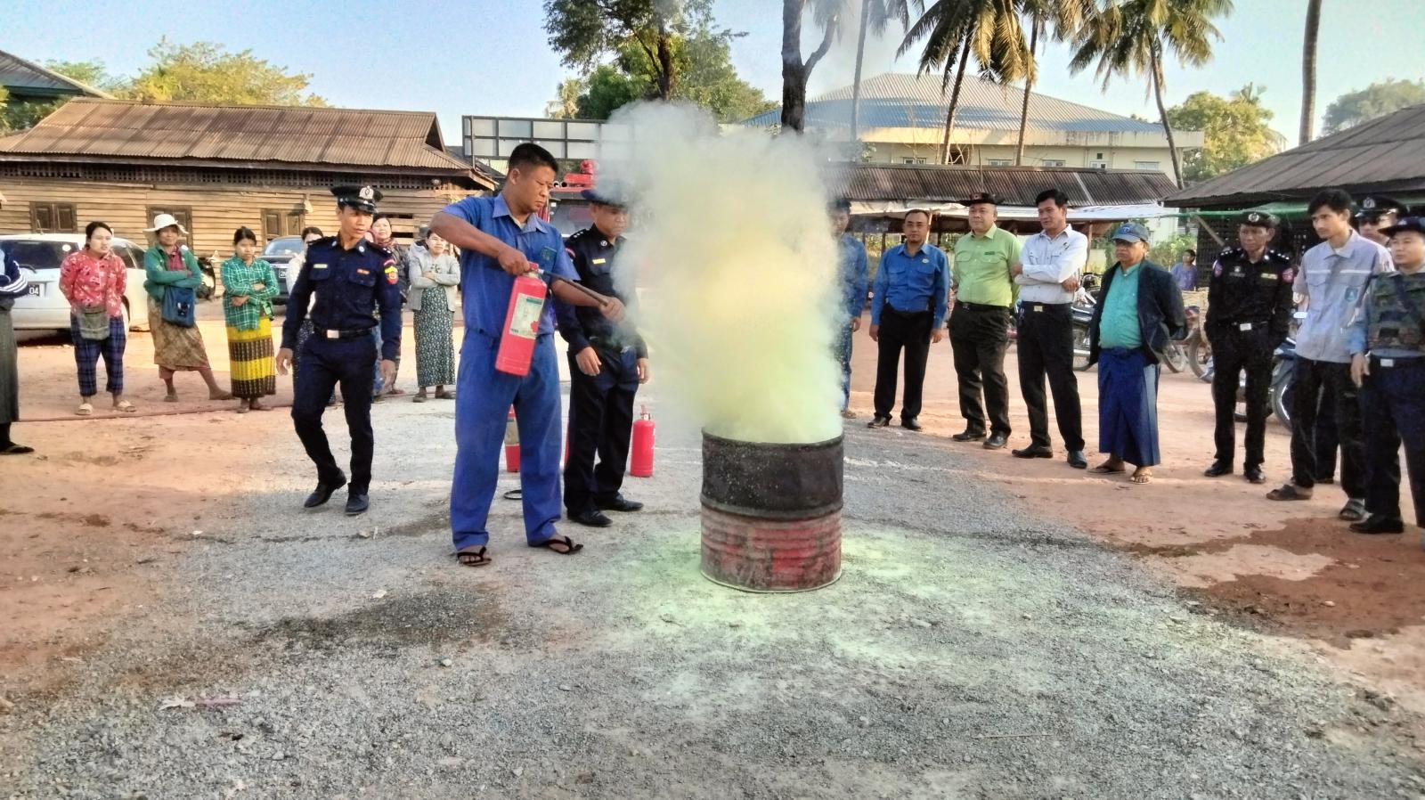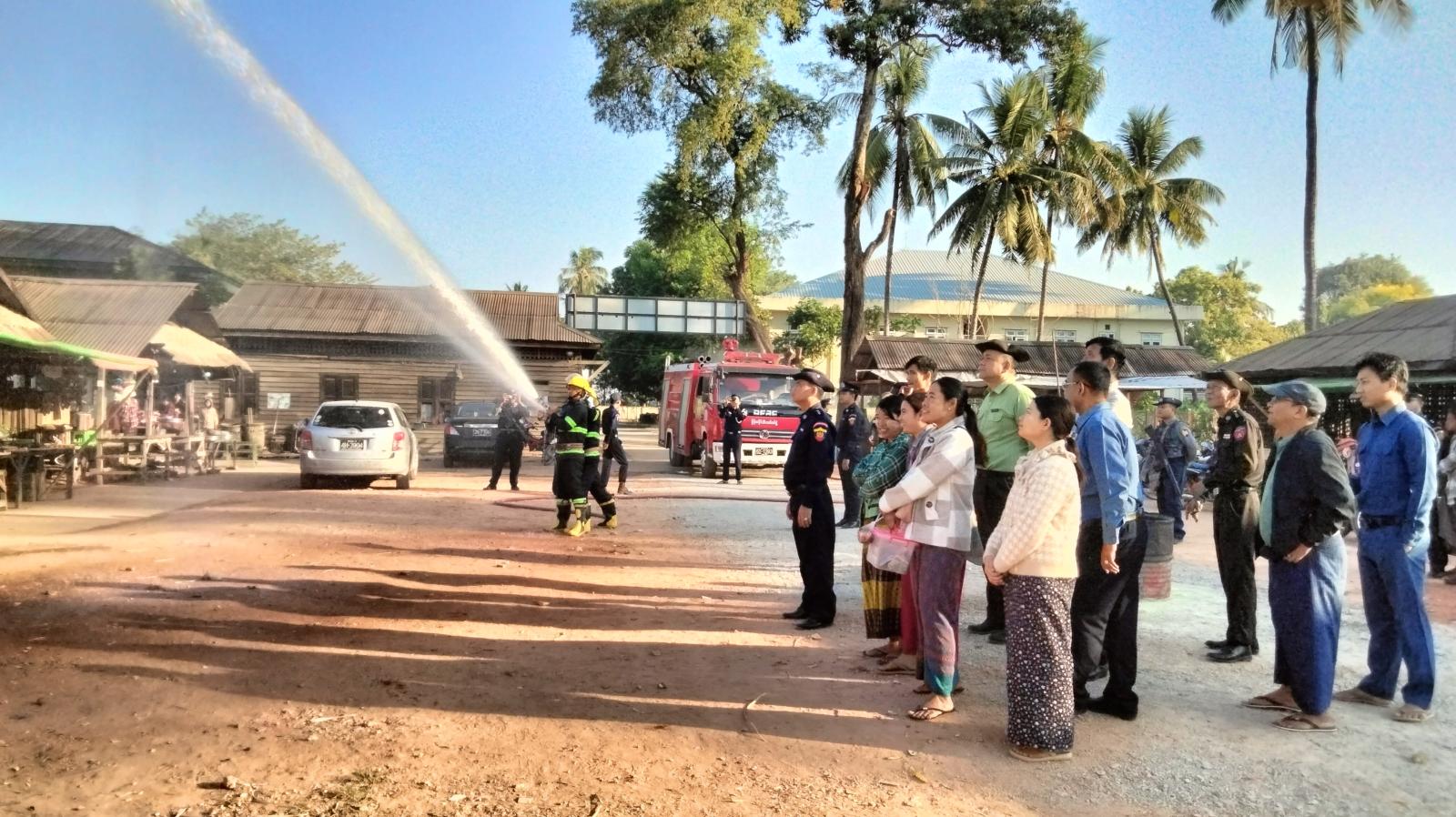 ဇာတ်တိုက်သရုပ်ပြလေ့ကျင့်ရာတွင် မီးသတ်တပ်ဖွဲ့ဝင်များက သရုပ်ပြမီးငြိမ်းသတ်ခြင်း ဈေးဝန်ထမ်းများနှင့် ဈေးသူဈေးသားများက လက်တွေ့မီးငြိမ်းသတ်ခြင်း မီးသတ်မော်တော်ယာဥ်ဖြင့် ရေပက်ဖြန်းခြင်း ဈေးဆိုင်ခန်း များအတွင်းလျှပ်စစ်ဝါယာသွယ်တန်းမှုများ ရေကန်များစစ်ဆေးခြင်းတို့ကို မြို့နယ်မီးသတ်ဦးစီးမှူး ဦးအောင်အောင်ဝင်းစိန်နှင့်ဝန်ထမ်းများကဆောင်ရွက်ခဲ့သည်။