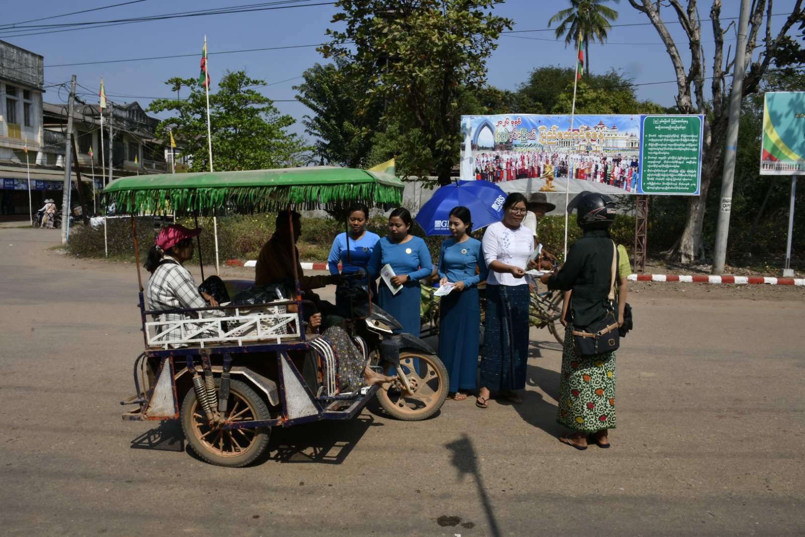 ရှေ့ဦးစွာ အဆိုပါဆိုင်းဘုတ်အား မြို့နယ်စီမံခန့်ခွဲရေးနှင့်အုပ်ချုပ်ရေးကော်မတီဥက္ကဋ္ဌ ဦးဇော်မျိုးနှင့် တာဝန်ရှိသူများက ဆိုင်းဘုတ်အား စိုက်ထူကာ အမွှေးနံသာရည်များ ပက်ဖျန်းပေးပြီး တက်ရောက်လာသူများနှင့် စုပေါင်းမှတ်တမ်းတင်ဓာတ်ပုံ ရိုက်ကူးခဲ့ကြသည်။ ထို့နောက် မြို့နယ်ပြည်သူ့ဆက်ဆံရေးဦးစီးဌာနမှ ဝန်ထမ်းများနှင့် မြို့နယ်အမျိုးသမီးရေးရာအဖွဲ့ဝင်များ၊ မိခင်နှင့်ကလေးစောင့်ရှောက်ရေးအသင်းဝင်များက (၇၉) နှစ်မြောက် ပြည်ထောင်စုနေ့အထိမ်းအမှတ် သတင်းစကားလက်ကမ်းစာစောင်များကို ဖြန့်ဝေပေးခဲ့ကြသည်။