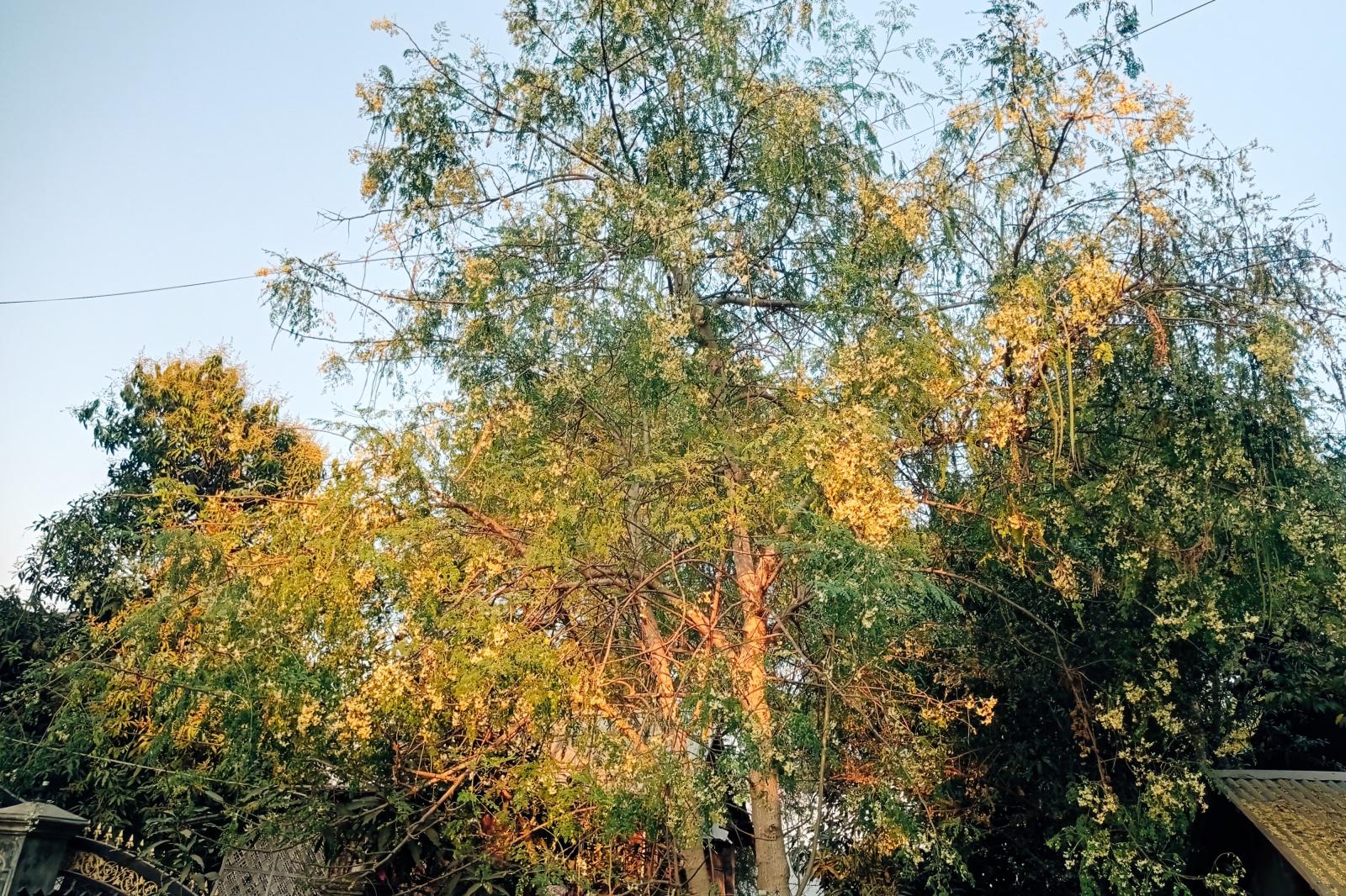 အပင်မှာ ပင်လတ်မျိုးဖြစ်ပြီး၊ အမြင့် ၂၅ ပေအထိ မြင့်သည်။ အခေါက်ထူ၍ ချောပြီး အဖြူ စက်ကလေးများရှိသည်။ အတွင်းသားဖြူသည်။ အရွက်မှာ သုံးခါငှက်မွေး ရွက်ပေါင်းဖြစ်၍ ရွက်လွှဲထွက်သည်။ ရွက်မြွှာများသေးငယ်၍ ဘဲဥပုံရှိပြီး အရင်းအနည်းငယ်သွယ်သည်။ ထိပ်ဝိုင်းသည်။ မျက်နှာချင်းဆိုင်ထွက်သည်။ ထိပ်ရွက်တစ်ရွက်နှင့် ရွက်ပြားနူးညံ့ချောမွေ့ပြီး အနားညီသည်။ အပွင့်မှာ အဖြူရောင်ရှိပြီး အနံ့ရှိသည်။ တန်ခူး၊ ကဆုန်တွင်ပွင့်သည်။ အသီးမှာရှည်လျား၍ အစိမ်းရင့်ရောင်ရှိပြီး အက်ကွဲသီးဖြစ်သည်။ အမြောင်းပါသည်။ အသီးအတွင်းတွင် အစေ့များ တန်းစီလျက် ၅-၇ စေ့ခန့် ပါဝင်သည်။ အတွင်းသားထူသည်။ အစေ့၌အတောင်ပါသည်။ ကဆုန်၊ နယုန်လတွင် သီးသည်။ အမြစ်မှာ အမြစ်ခေါက်ထူသည်။ အမြစ်ဖြာသည်။