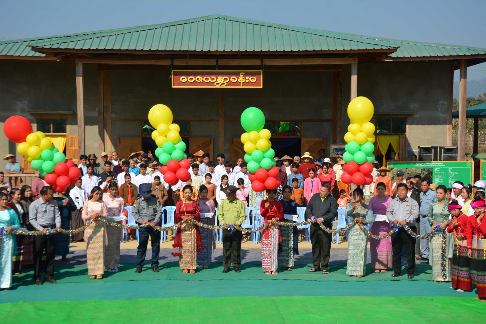 ရှေးဦးစွာ ဝေဇယန္တာဘက်စုံသုံးခန်းမဆောင်ဖွင့်လှစ်ရာတွင် ခရိုင်စီမံခန့်ခွဲရေးနှင့်အုပ်ချုပ်ရေးကော်မတီဥက္ကဋ္ဌ ဦးကျော်စိုးတင့်နှင့် အတွင်း ရေးမှူး ခရိုင်ရဲတပ်ဖွဲ့မှူး ဒုတိယရဲမှူးကြီး ခင်မောင်ကျော်၊ မြို့နယ်စီမံခန့်ခွဲရေးနှင့်အုပ်ချုပ်ရေးကော်မတီဥက္ကဋ္ဌ ဦးမြတ်ခိုင်ကို၊ ခရိုင်ကျေးလက်ဒေသ ဖွံ့ဖြိုးတိုးတက်ရေးဦးစီးဌာနမှ ခရိုင်ဦးစီးမှူး ဦးထွန်းထွန်းဝင်းနှင့် မြို့နယ်ဦးစီးမှူး ဦးဌေးမြင့်တို့က ဖဲကြိုးဖြတ်ဖွင့်လှစ်ကြပြီး တက်ရောက်လာကြသည့် ကျေးရွာကော်မတီဝင်များ၊ တိုင်းရင်းသားရိုးရာ စာပေနှင့်ယဉ်ကျေးမှုအသင်းအဖွဲ့ဝင်များ၊ ကျောင်းဆရာ/ဆရာမများ၊ ဒေသခံကျေးရွာပြည်သူများ တို့နှင့်အတူ စုပေါင်းမှတ်တမ်းတင်ဓာတ်ပုံများ ရိုက်ကူးခဲ့ကြသည်။