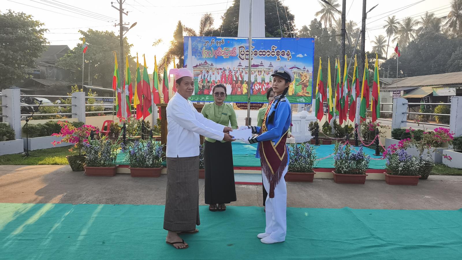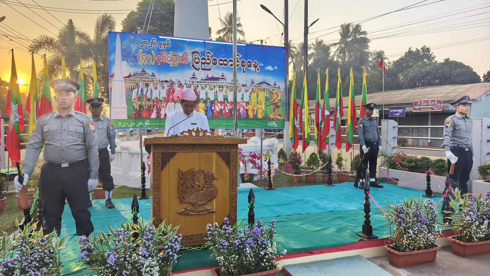 ထို့နောက် နံနက် ၇ နာရီတွင် နိုင်ငံတော်အလံအားအလေးပြု၍ ပြည်ထောင်စုသမ္မတမြန်မာနိုင်ငံတော် ယာယီသမ္မတ၊ နိုင်ငံတော်လုံခြုံရေးနှင့်အေးချမ်းသာယာရေးကော်မရှင်ဥက္ကဋ္ဌ၊ ဗိုလ်ချုပ်မှူးကြီး သတိုးမဟာသရေစည်သူ သတိုးသီရိသုဓမ္မ မင်းအောင်လှိုင်ထံမှ ၂၀၂၆ ခုနှစ်၊ ဖေဖော်ဝါရီလ (၁၂) ရက်နေ့တွင် ကျရောက်သော (၇၉) နှစ်မြောက် ပြည်ထောင်စုနေ့အထိမ်းအမှတ် အခမ်းအနားသို့ပေးပို့သော သဝဏ်လွှာအား မြို့နယ်စီမံခန့်ခွဲရေးနှင့် အုပ်ချုပ်ရေးကော်မတီဥက္ကဋ္ဌ၊ မြို့နယ်အုပ်ချုပ်ရေးမှူး ဦးပြည်သိမ်းမှ ဖတ်ကြားသည်။