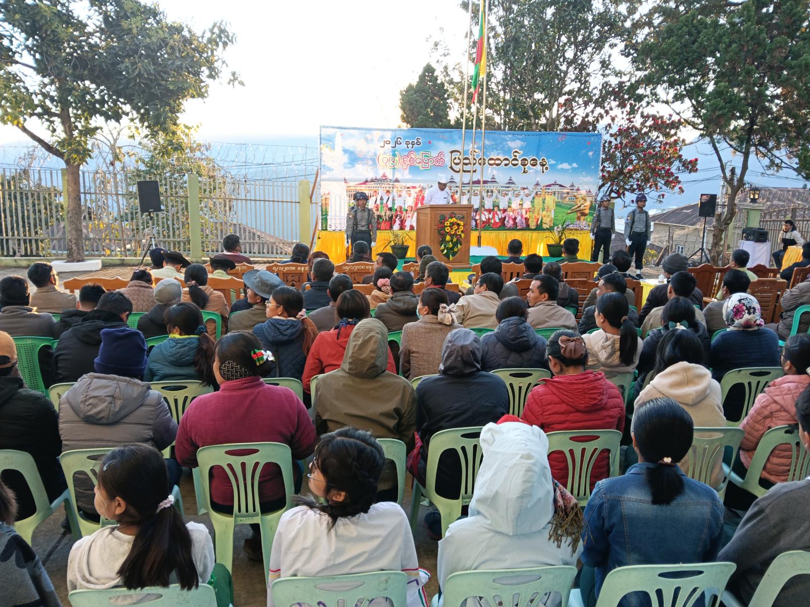 ချင်းပြည်နယ်၊ တီးတိန်မြို့၌ (၇၉)နှစ်မြောက် ပြည်ထောင်စု နေ့အခမ်းအနားကို ယမန်နေ့နံနက် ၆ နာရီခွဲကအထွေထွေအုပ်ချုပ်ရေးဦးစီးဌာနတန်းစီကွင်းတွင်ကျင်းပပြုလုပ်သည်။