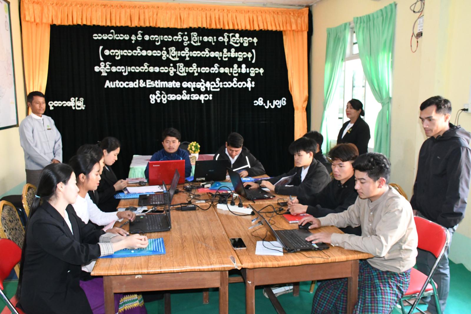 ကချင်ပြည်နယ်၊ ပူတာအိုခရိုင် ကျေးလက်ဒေသဖွံ့ဖြိုးတိုးတက်ရေးဦးစီးဌာနကကြီးမှူး၍ အခြေခံအဆောက်အဦလုပ်ငန်းများဖြစ်သော ရေပေးရေး၊ လမ်းတံတားများဒီဇိုင်းရေးဆွဲခြင်း၊ Estimate တွက်ချက်တတ်စေရန်နှင့် ဝန်ထမ်းဆောင်ရည်မြင့်မားလာစေရန်အတွက် Auto Cad နှင့် Estimate ရေးဆွဲနည်းသင်တန်းဖွင့်ပွဲအခမ်းအနားကို ယမန်နေ့နံနက်(၁၀)နာရီက ပူတာအိုခရိုင် ကျေးလက်ဒေသဖွံ့ဖြိုး တိုးတက်ရေးဦးစီးဌာန အစည်းအဝေးခန်းမ၌ ကျင်းပသည်။