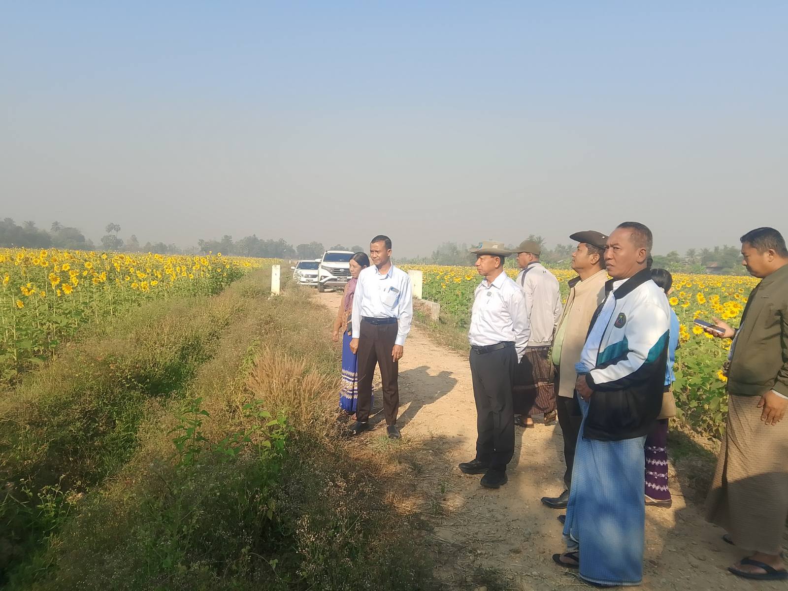 ဆက်လက်၍ နေပြည်တော်ကောင်စီဝင် ဦးခင်မောင်လတ်သည် ဒက္ခိဏသီရိမြို့နယ်၊ ရွာမကျေးရွာအုပ်စု၊ ကွင်းအမှတ် (၁၆၇၂)ကွင်း၊ နွေစပါး(၁၀)ဧက စိုက်ပျိုးခြင်း၊ ရွာမကျေးရွာအုပ်စု၊ ကွင်းအမှတ် (၁၆၇၂)ကွင်းအတွင်း နေကြာ(၁၀)ဧကအောင်မြင်ဖြစ်ထွန်းနေမှု အခြေအနေနှင့် ချိုင်းကျေးရွာအုပ်စု ကွင်းအမှတ် (၁၆၇၁)ကွင်းအတွင်း ဧက(၅၀)နေကြာ စိုက်ခင်းဖြစ်ထွန်းနေမှု အခြေအနေအား ကွင်းဆင်းကြည့်ရှုခဲ့ပြီး တောင်သူများအား စပါးနှင့် ဆောင်းသီးနှံများ အထွက်နှုန်းကောင်းမွန်စေရေး မြေပြုပြင်ခြင်းလုပ်ငန်းအား စနစ်တကျ ဆောင်ရွက်ရန်လိုအပ်ကြောင်း၊ မျိုး၊ မြေ၊ ရေ၊ နည်း မှန်ကန်၍ ပန်းတိုင်အထွက်နှုန်းရရှိစေရေး နည်းစနစ်မှန်ကန်စွာ ဆက်လက်ဆောင်ရွက်ရန် လိုအပ်ပါကြောင်းနှင့် ရေစီးရေလာ ကောင်းမွန်စေရေးအတွက် ရေမြောင်းများ ကောင်းမွန်အောင်ဆောင်ရွက်ရန် လိုအပ်ပါကြောင်း မှာကြားခဲ့သည်။
