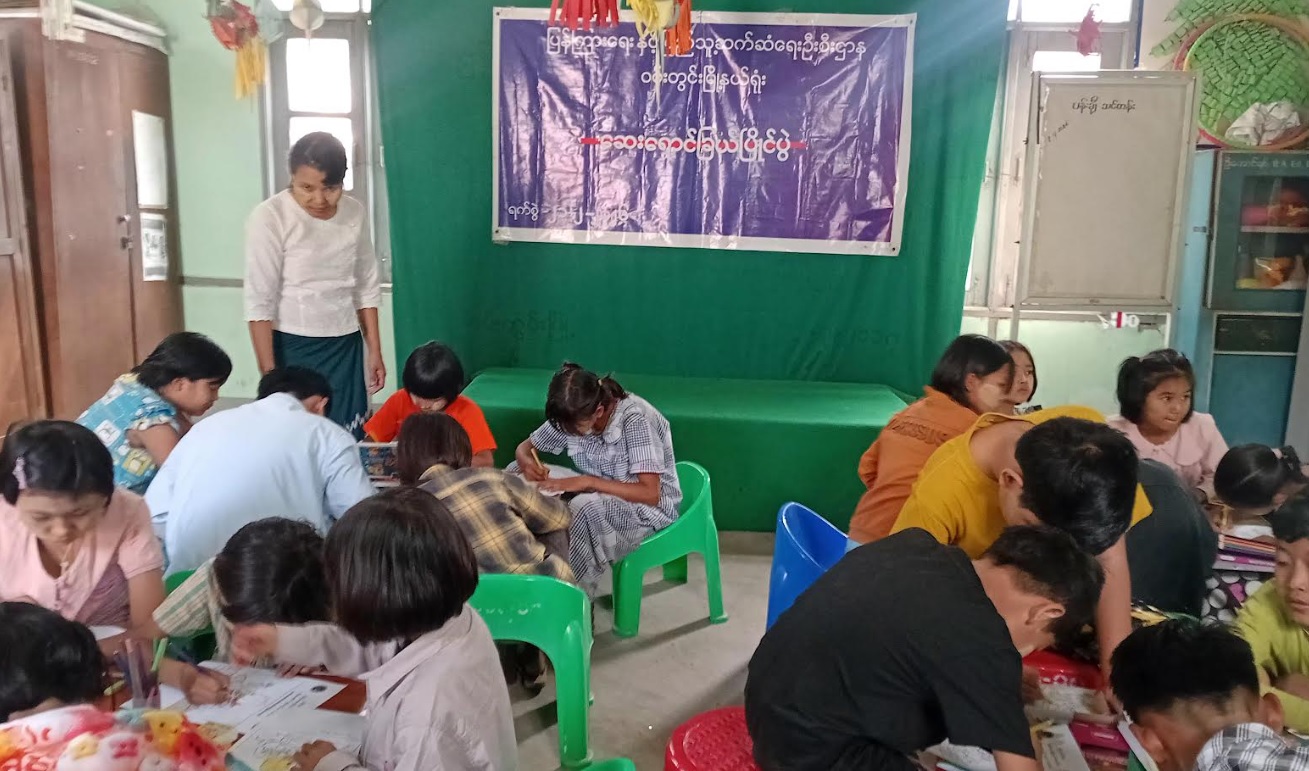 နွေရာသီကျောင်းပိတ်ရက်များတွင် လူငယ်လူရွယ်များ အသိပညာ ဗဟုသုတများတိုးပွားစေရန် ရည်ရွယ်၍ ဝမ်းတွင်းမြို့နယ်လူထုအခြေပြုဗဟိုဌာနခန်းမ(Community Centre)ခန်းမတွင် ပြိုင်ပွဲများကို ကျင်းပပေးလျက်ရှိရာ ယနေ့နံနက်ပိုင်းက ဆေးရောင်ခြယ်ပြိုင်ပွဲကို ကျင်းပသည်။