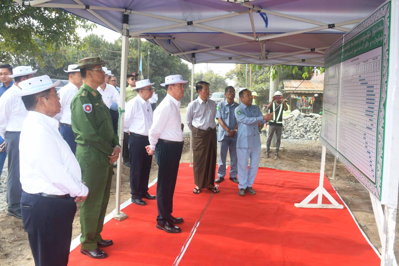 ပြည်နယ်ဝန်ကြီးချုပ်က သတ်မှတ်စံချိန်စံညွှန်းများ ပြည့်မီရေး၊ အချိန်မီပြီးစီးနိုင်ရေး စေတနာထား ဆောင်ရွက်သွားကြရန် မှာကြားပြီး လိုအပ်သည်များကို တာဝန်ရှိသူများနှင့် ပေါင်းစပ်ညှိနှိုင်းပေးခဲ့ကာ လမ်းခင်းခြင်းလုပ်ငန်း ဆောင်ရွက်နေမှုအား ကြည့်ရှုစစ်ဆေးကြသည်။