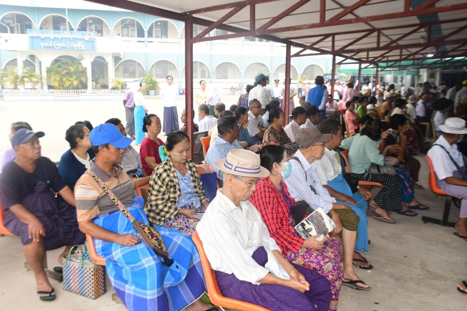 ပဲခူးတိုင်းဒေသကြီးအစိုးရအဖွဲ့၏ ဦးဆောင်လမ်းညွှန်မှုဖြင့် (၃၈)ကြိမ်မြောက် လစဉ်အငြိမ်းစား နိုင်ငံ့ဝန်ထမ်းများ ကျန်းမာရေးစောင့်ရှောက်မှု ဆောင်ရွက်ပေးနေမှုအား ယနေ့နံနက်ပိုင်းက ပဲခူးမြို့၊ အထွေထွေရောဂါကုဆေးရုံကြီး၌ ပြုလုပ်ခဲ့ရာ ပဲခူးတိုင်းဒေသကြီးအစိုးရအဖွဲ့ဝန်ကြီးချုပ် ဦးမျိုးဆွေဝင်း သွားရောက်ကြည့်ရှုအားပေးခဲ့သည်။