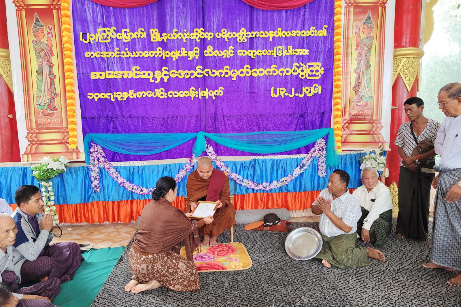 ယင်းနောက် ဝိသုဒ္ဒါရုံသာသနပြုစာသင်တိုက် တိုက်အုပ်ဆရာတော် ဘဒ္ဒန္တသုမနသာရထံမှ လှူဒါန်းမှုအစုစုတို့အတွက် ရေစက်သွန်းချအမျှပေးဝေကာ “ဗုဒ္ဓသာသနံ စိရံတိဋ္ဌတု” သုံးကြိမ်ရွတ်ဆို၍ အခမ်းအနားကို အောင်မြင်စွာရုပ်သိမ်းခဲ့ပြီး အခမ်းအနားသို့ မြို့နယ်စီမံခန့်ခွဲရေးနှင့်အုပ်ချုပ်ရေးကော်မတီဥက္ကဋ္ဌ ဦးလှရွှေနှင့် တာဝန်ရှိသူများ၊ အသင်းသူ/အသင်းသားများနှင့် စေတနာရှင်၊ အလှူရှင်များ တက်ရောက်ကြည်ညိုခဲ့ကြကြောင်း သိရသည်။