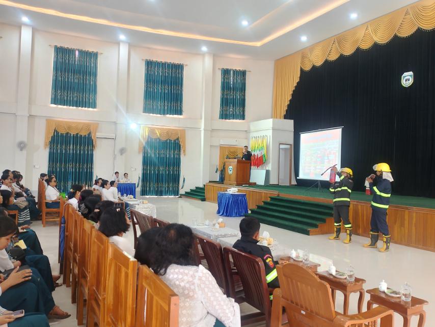 ကွန်ပျူတာတက္ကသိုလ်(ပြည်)၌ မီးဘေးအသိပညာပေးဟောပြောပွဲနှင့် လက်တွေ့မီးငြှိမ်းသတ်နည်း သရုပ်ပြလေ့ကျင့်မှု ဆောင်ရွက်