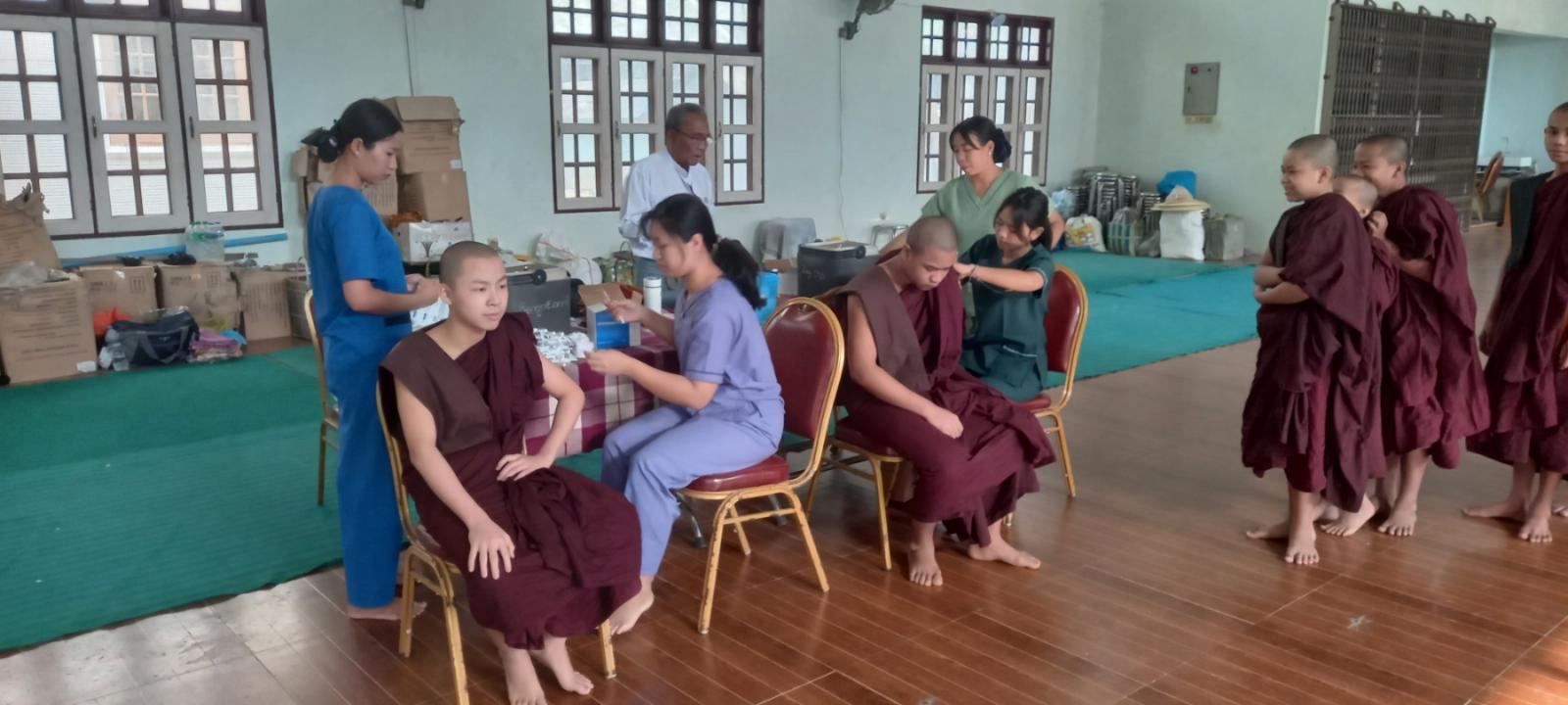 အဆိုပါ ဝက်သက်ကာကွယ်ဆေးများကို ကျန်းမာရေးဦးစီးဌာနမှ သူနာပြုဆရာမ ဒေါ်ကေသီဦး ဦးဆောင်သောအဖွဲ့မှကျောင်းတိုက်အတွင်းရှိ အသက် ၁၅ နှစ်အောက် ကိုရင်၊ ဦးသူတော်လေးများနှင့် ယာယီနေရပ်စွန့်ခွာ ကလေးငယ်များအား ထိုးနှံပေးခဲ့သည်။ ကာကွယ်ဆေးထိုးနှံရာတွင် ရပ်ကွက်အုပ်ချုပ်ရေးမှူး ဦးညွန့်ဝေနှင့် ရာအိမ်မှူးအဖွဲ့များမှလည်း လိုအပ်သည်များ ပူးပေါင်းဆောင်ရွက်ပေးခဲ့ကြကြောင်း သိရသည်။