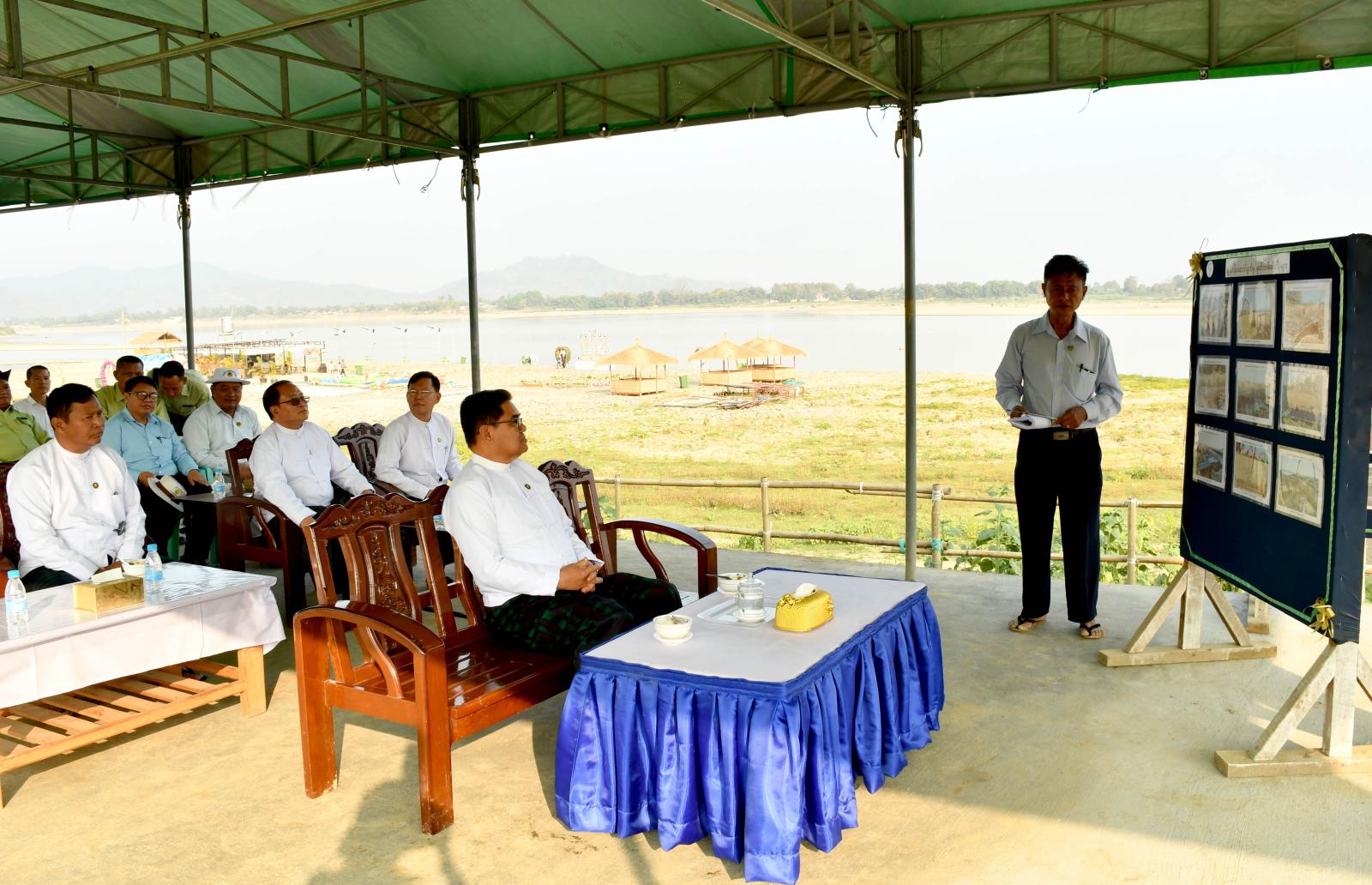 ထို့နောက် ရှင်းလင်းဆောင်၌ ပြည်နယ်ဆည်မြောင်းနှင့် ရေအသုံးချမှုစီမံခန့်ခွဲရေးဦးစီးဌာန၊ ပြည်နယ်ဦးစီးမှူး ဦးဇော်ဦးက ရေထိန်းတံခါးတည်ဆောက်နေမှု အခြေအနေများနှင့် စပ်လျဉ်း၍ ၂၀၂၅-၂၀၂၆ ဘဏ္ဍာရေးနှစ်အတွင်း ဆောင်ရွက်ရမည့်လုပ်ငန်းများအား ဆောင်ရွက်ပြီးစီးမှုအခြေအနေများနှင့်လာမည့် ၂၀၂၆-၂၀၂၇ ဘဏ္ဍာရေးနှစ်အတွင်း ဆောင်ရွက်သွားရမည့် လုပ်ငန်းများအား ရှင်းလင်းတင်ပြရာ ပြည်နယ်ဝန်ကြီးချုပ်က တည်ဆောက်ရေးလုပ်ငန်းများနှင့်စပ်လျဉ်း၍ သတ်မှတ်စံချိန်စံညွှန်းနှင့်အညီ အရည်အသွေးပြည့်မီစွာ ဆောင်ရွက်နိုင်ရေး လိုအပ်သည်များကို ပေါင်းစပ်ညှိနှိုင်း၍ ဖြည့်ဆည်းဆောင်ရွက်ပေးခဲ့ကာ ဧရာဝတီမြစ်အတွင်း မြစ်ကြမ်းပြင်မြင့်တက်လာမှုကြောင့် သောင်ခုံအသစ် ပေါ်ထွန်းမှု အခြေအနေများကို ကြည့်ရှုစစ်ဆေးခဲ့ကြသည်။